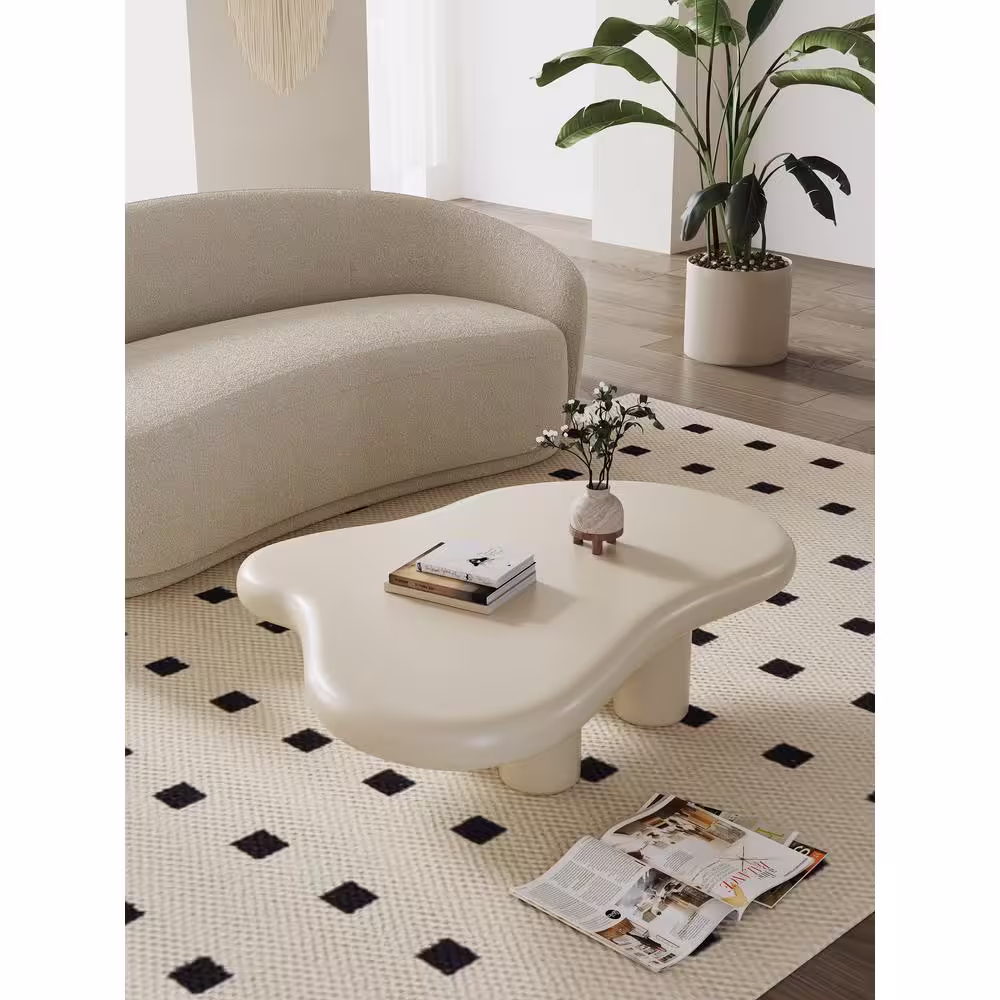 None 48.5 in. Modern Creamy White Medium Specialty Cloud Shaped Composite Top Coffee Table with Sturdy Four Legs