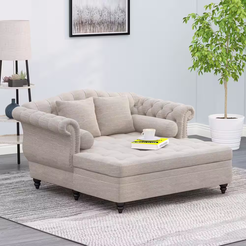 Noble House Sonne Beige and Dark Brown Tufted Double Chaise Lounge with Accent Pillows
