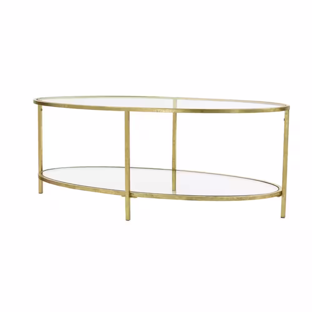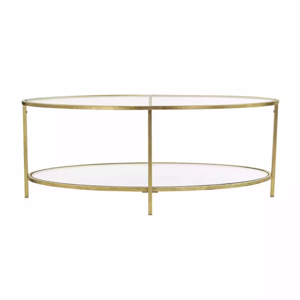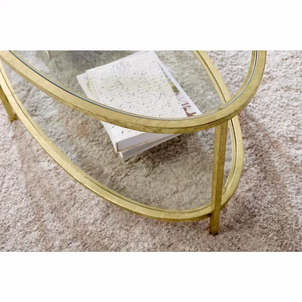 Home Decorators Collection Bella 46 in. Gold Leaf/Clear Large Oval Glass Coffee Table with Shelf