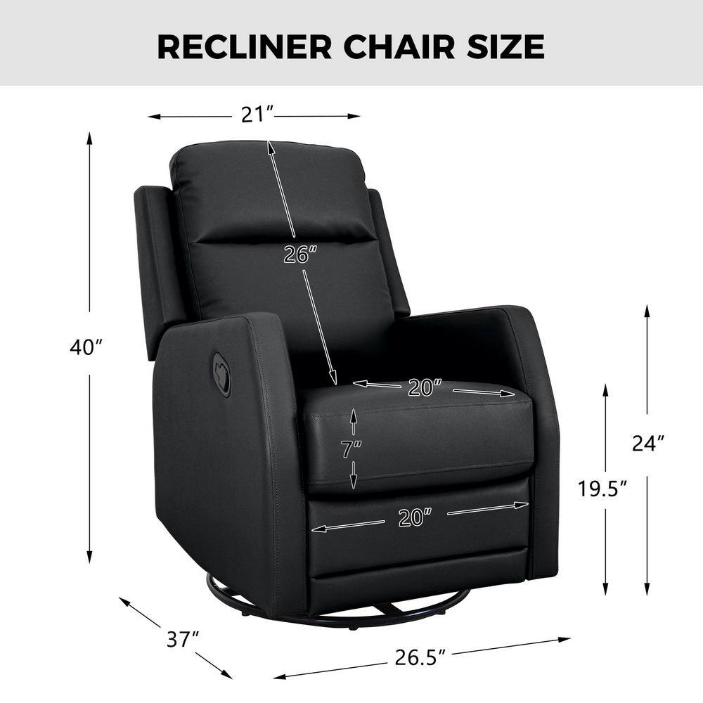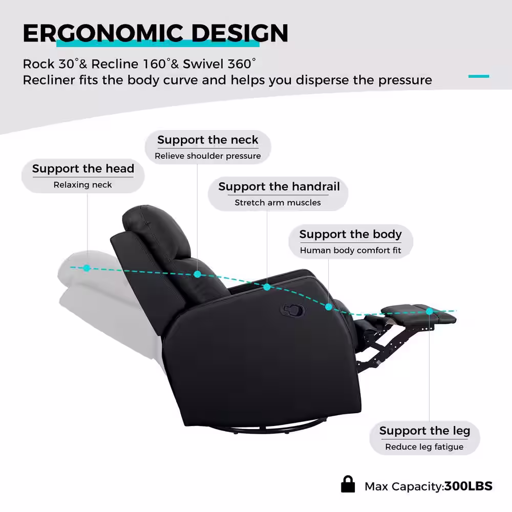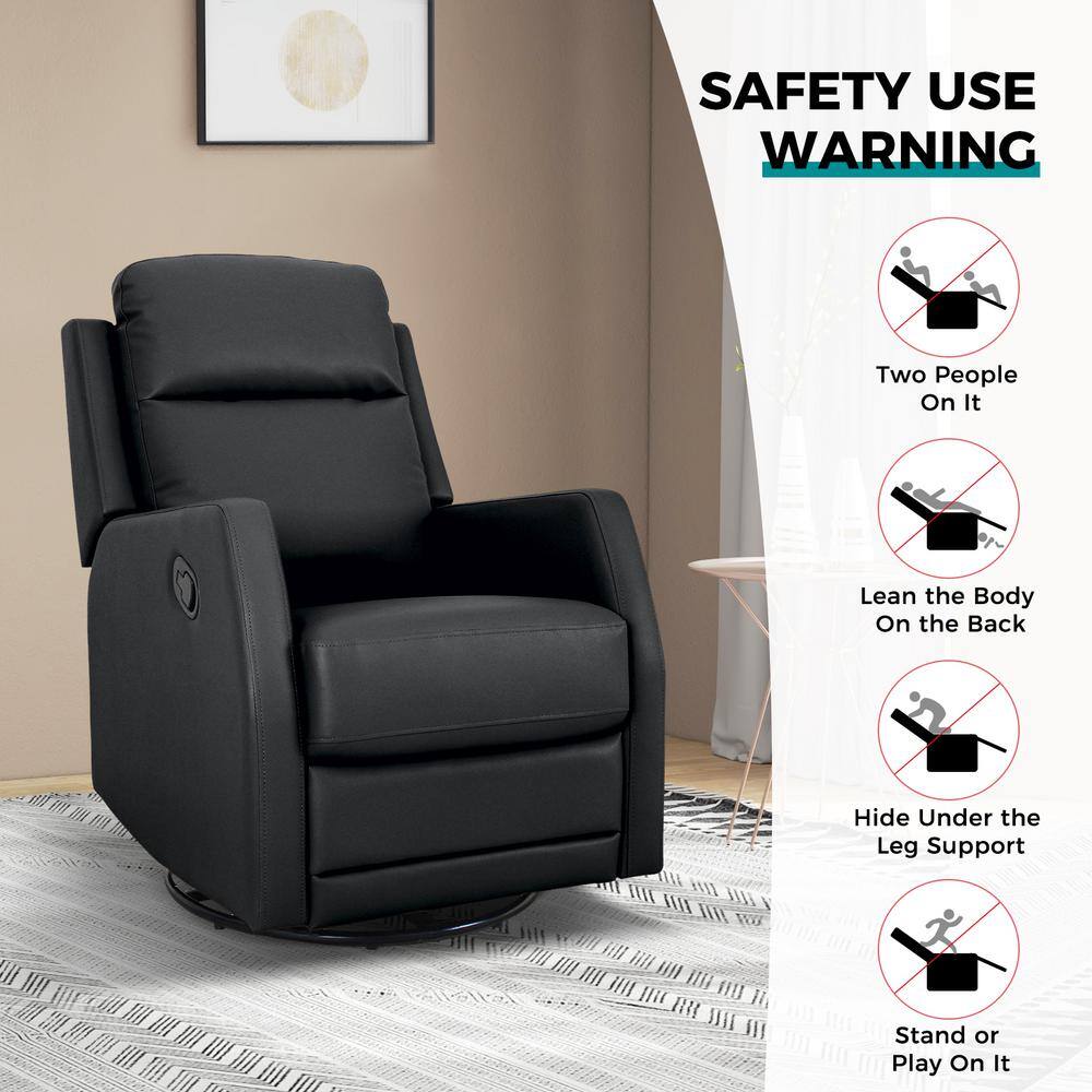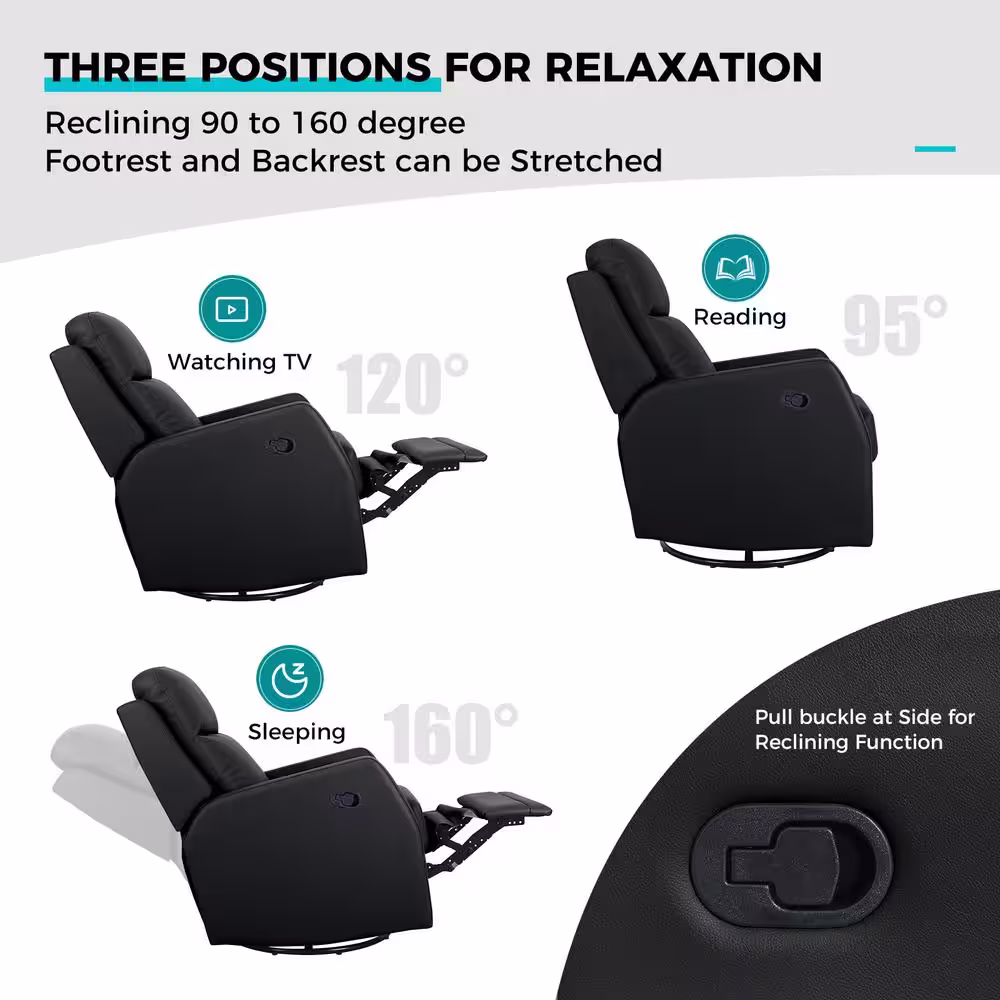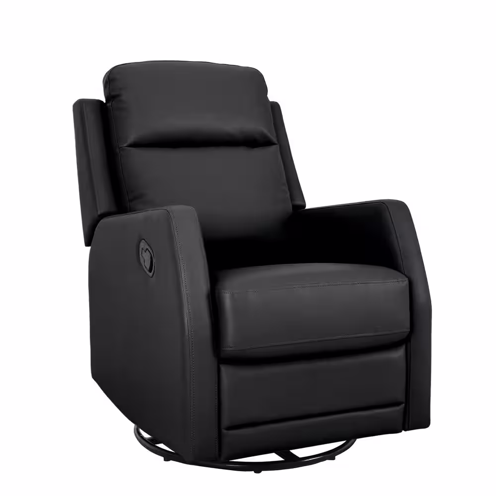 JAYDEN CREATION Coral Classic Black Upholstered Rocker Wingback Swivel Recliner with Metal Base