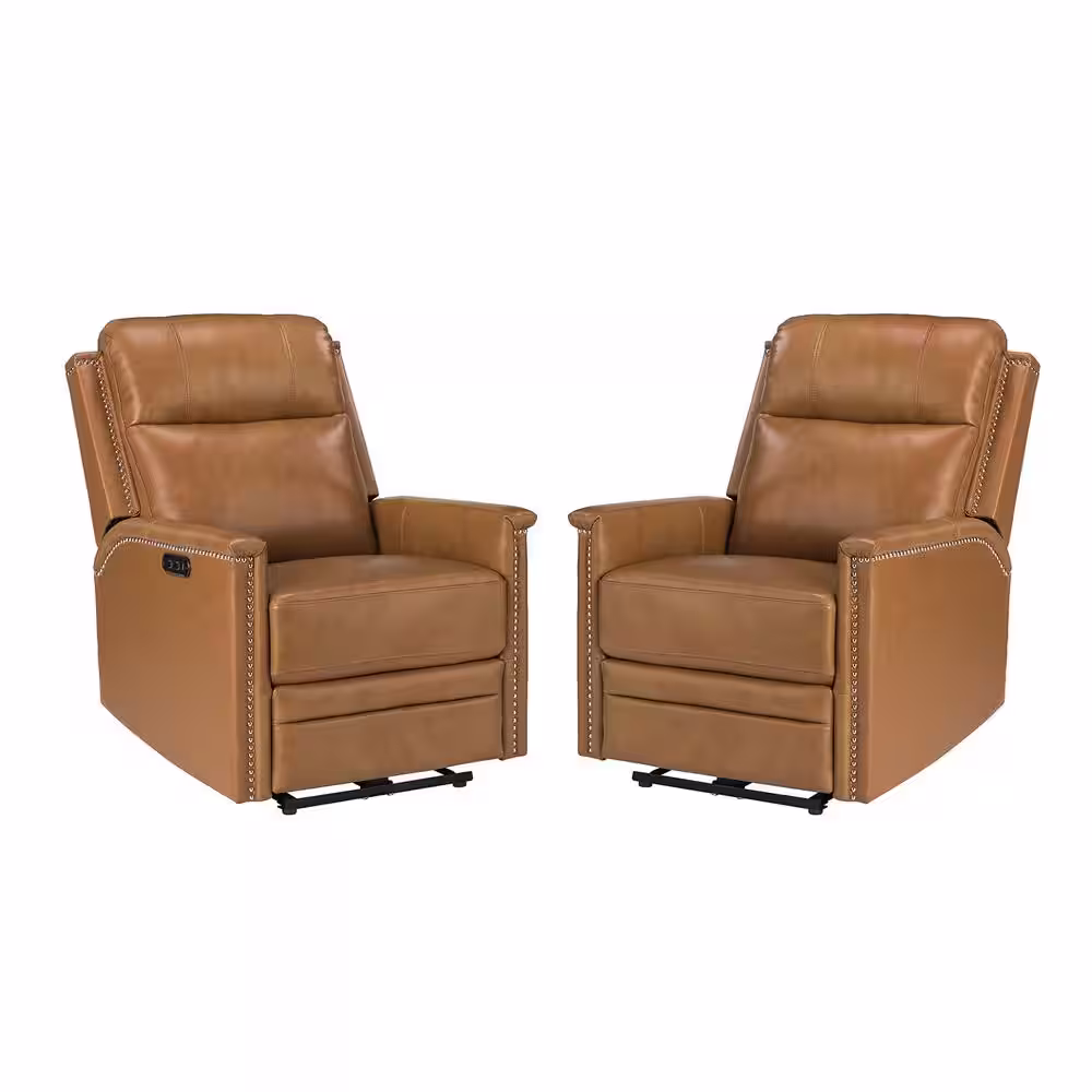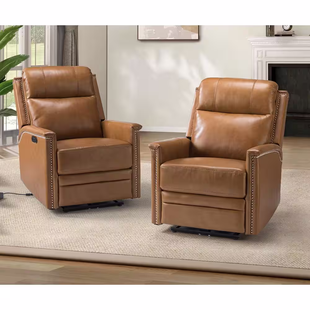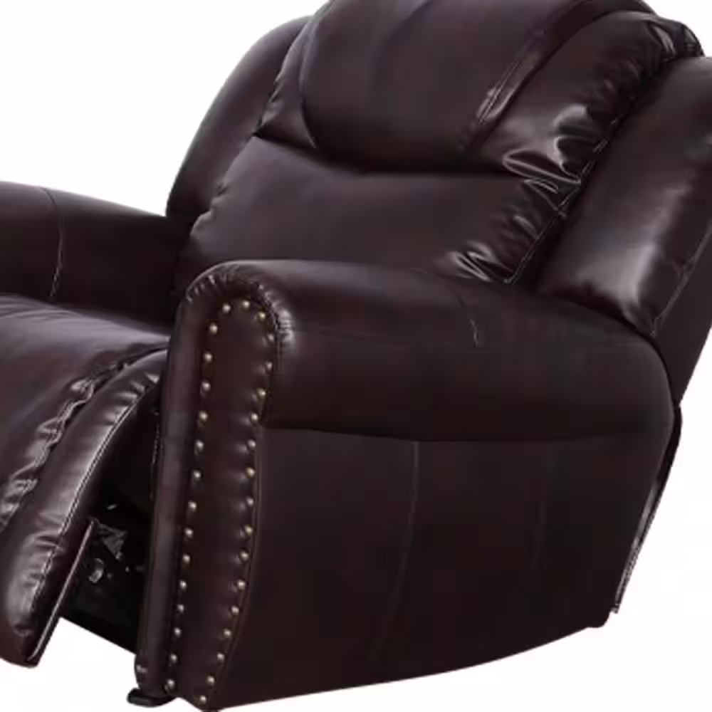 None Ifigenia 28.74 in. Wide Brown Genuine Leather Swivel Rocker Recliner with Tufted Back