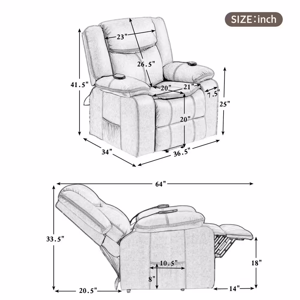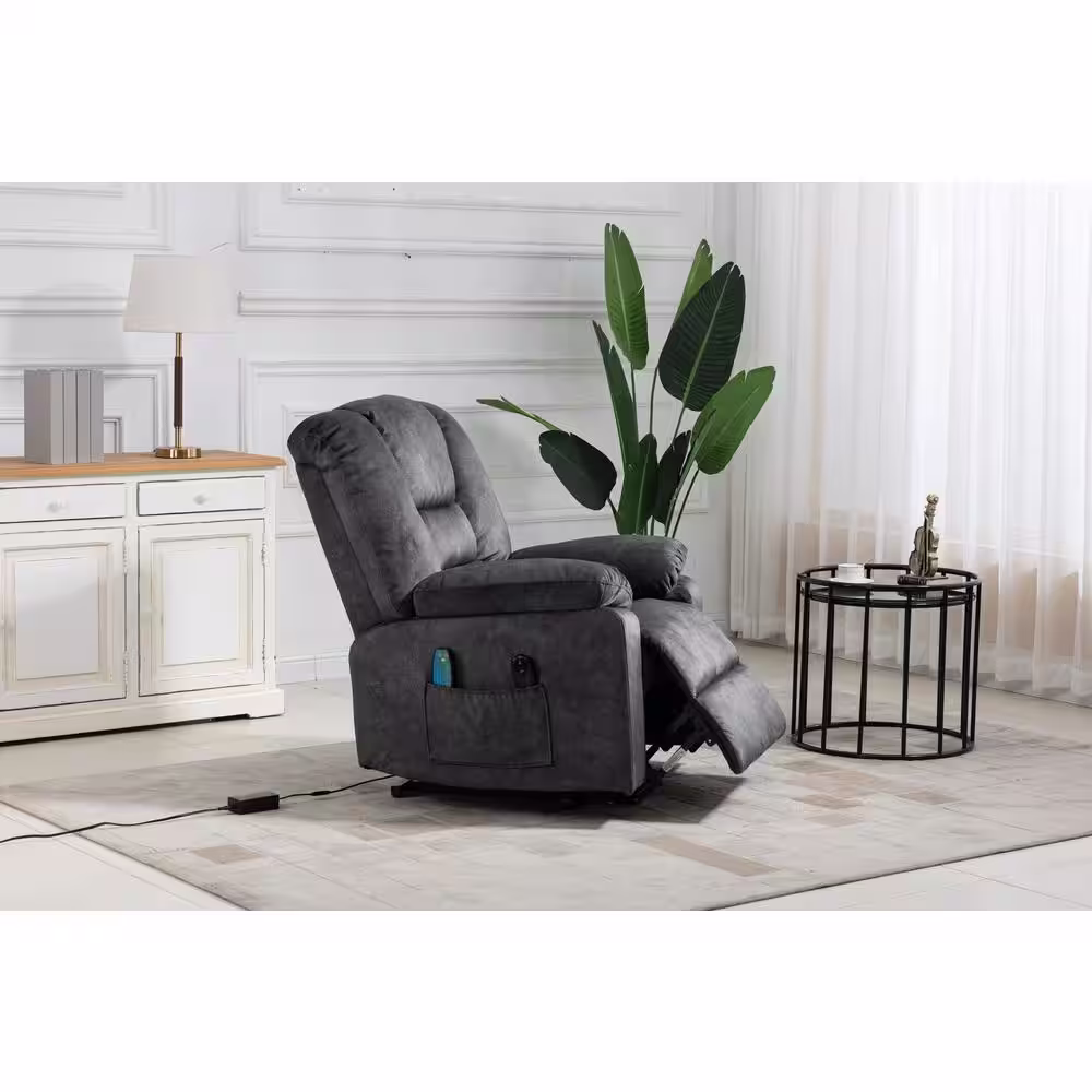 None Gray Oversized Power Lift Recliner Chair Sofa for Elderly with Massage and Heating