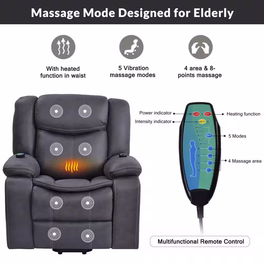 Qualler Gray Lift Chair Recliner with Heating Adjustable Massage Function