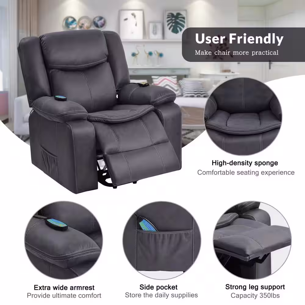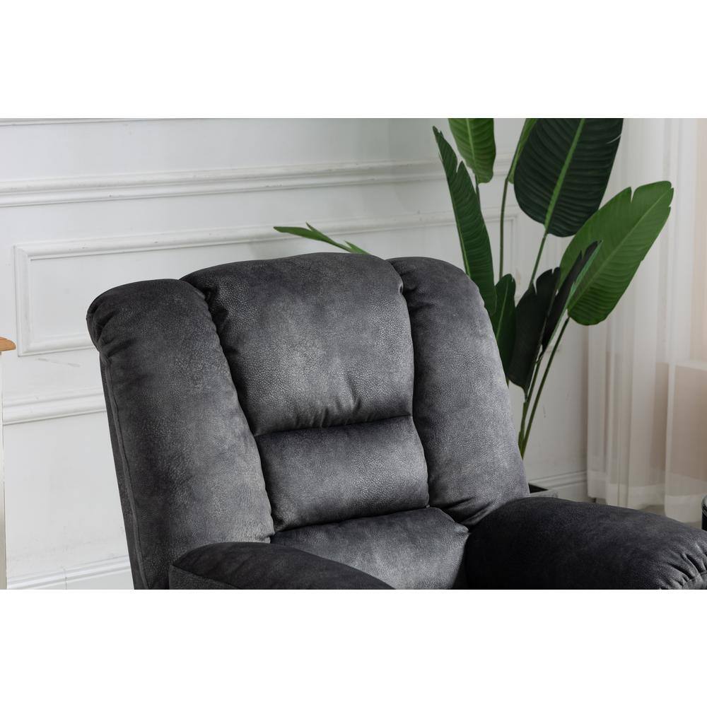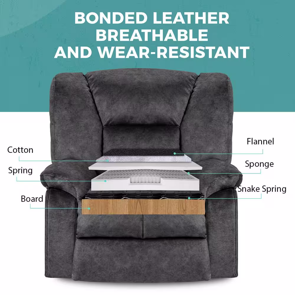 None Grey Swivel and Rocking Recliner Chair with Massage and Heating Bonded Leather Sofa