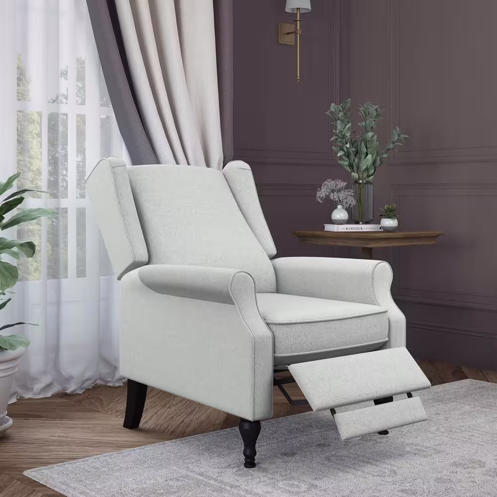 None Ernesto Turquoise Genuine Leather with The Wooden Armrest Recliner