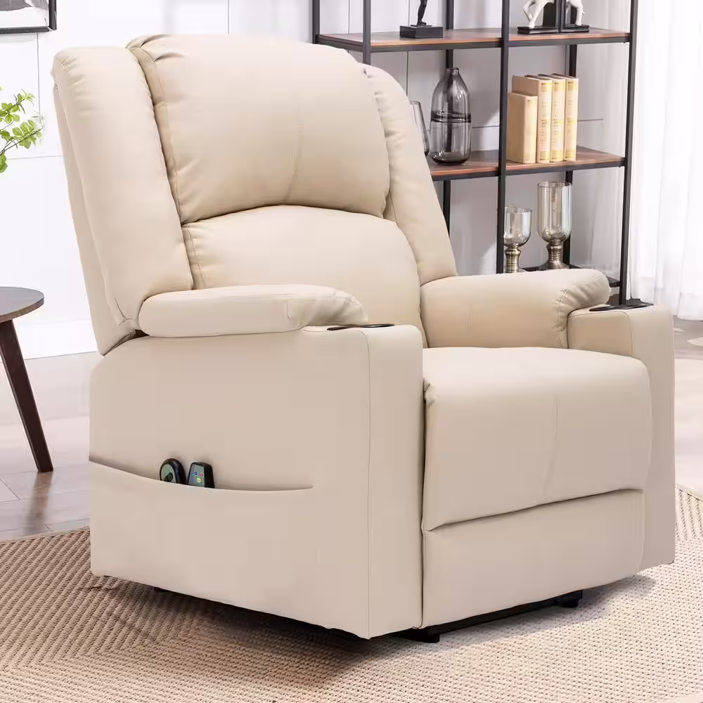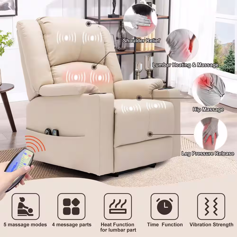 Lucklife White PU Leather Power Lift Recliner Chairs for Elderly Big Heated Massage Recliner Sofa
