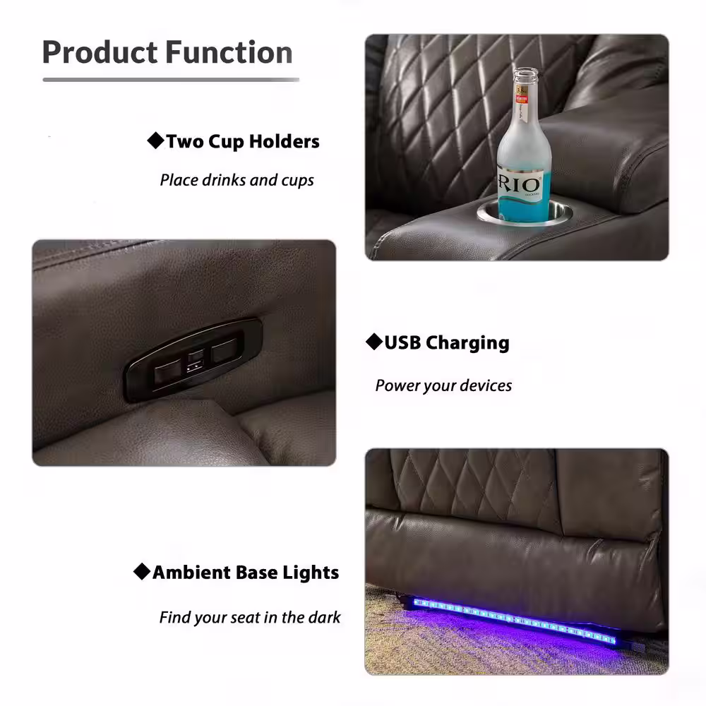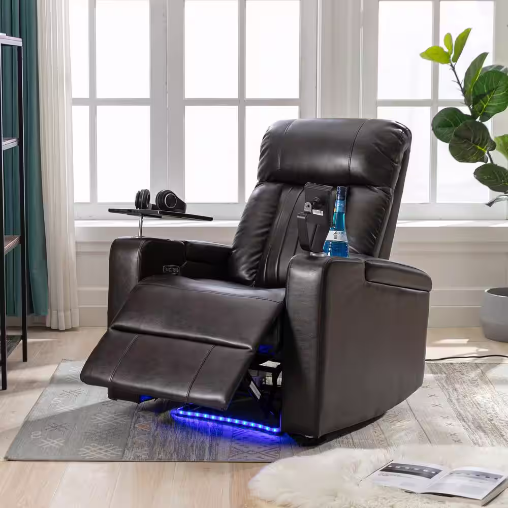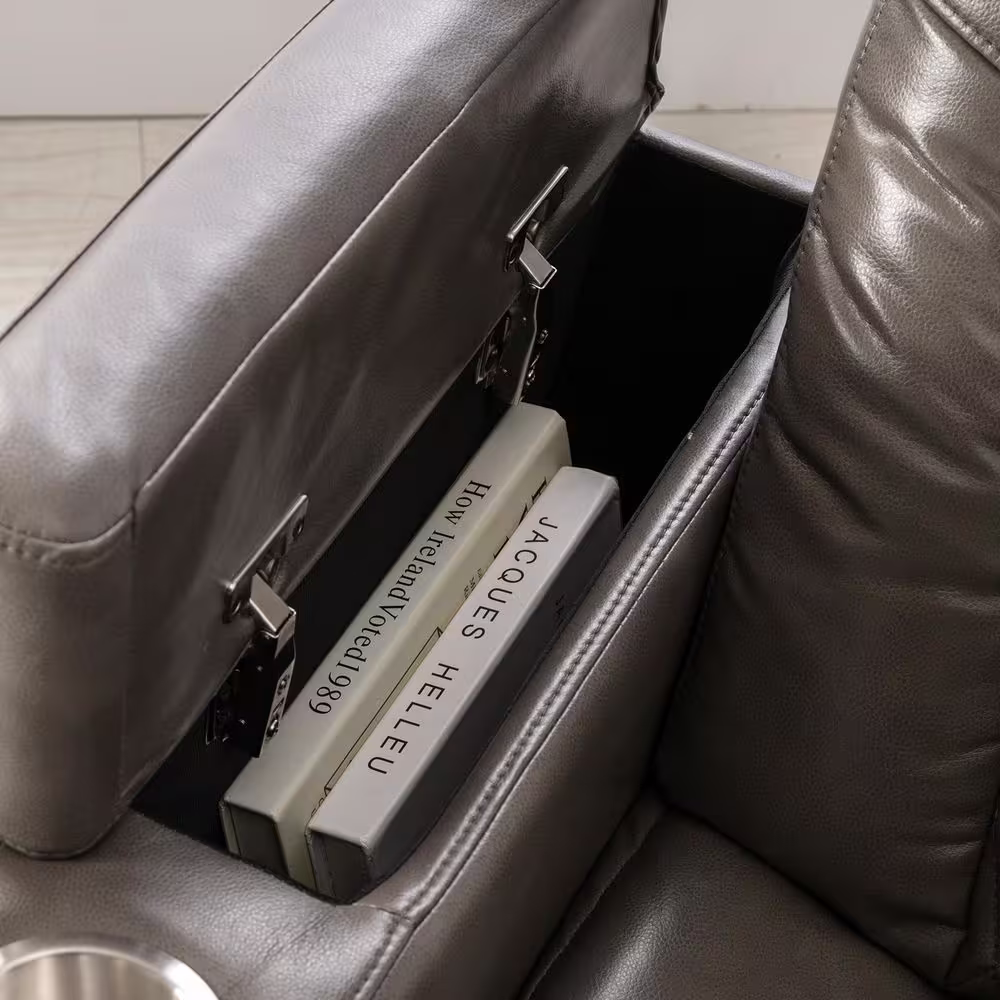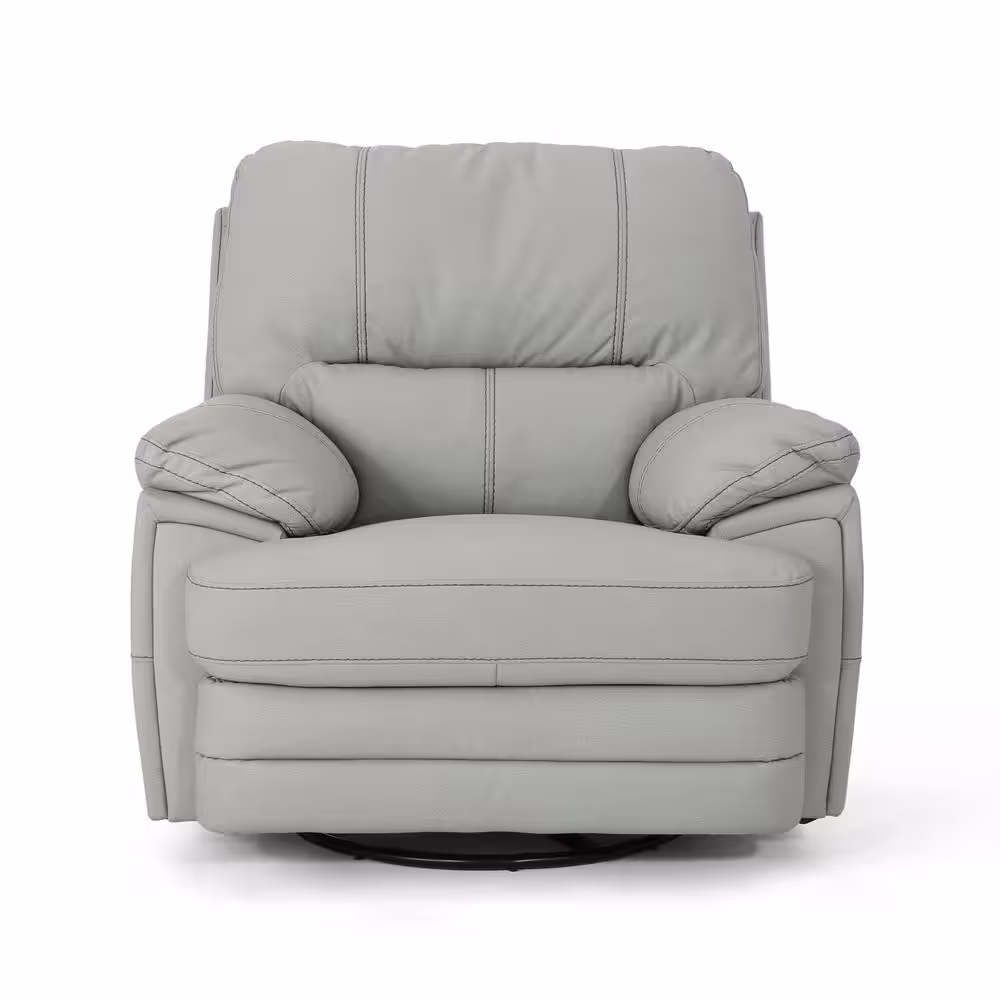 Noble House Elodie 40 in. Width Big and Tall Light Gray Faux Leather Power Reclining Wall Hugger Recliner