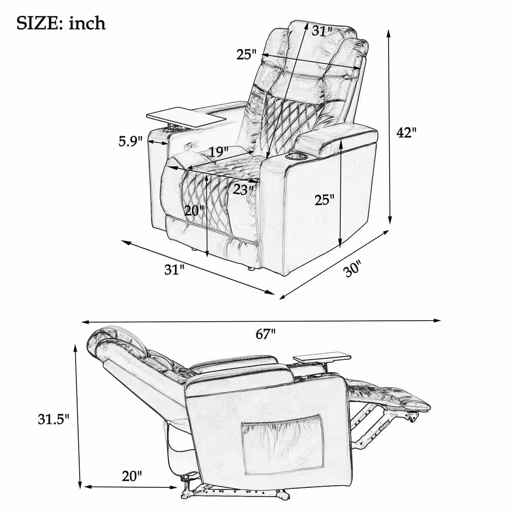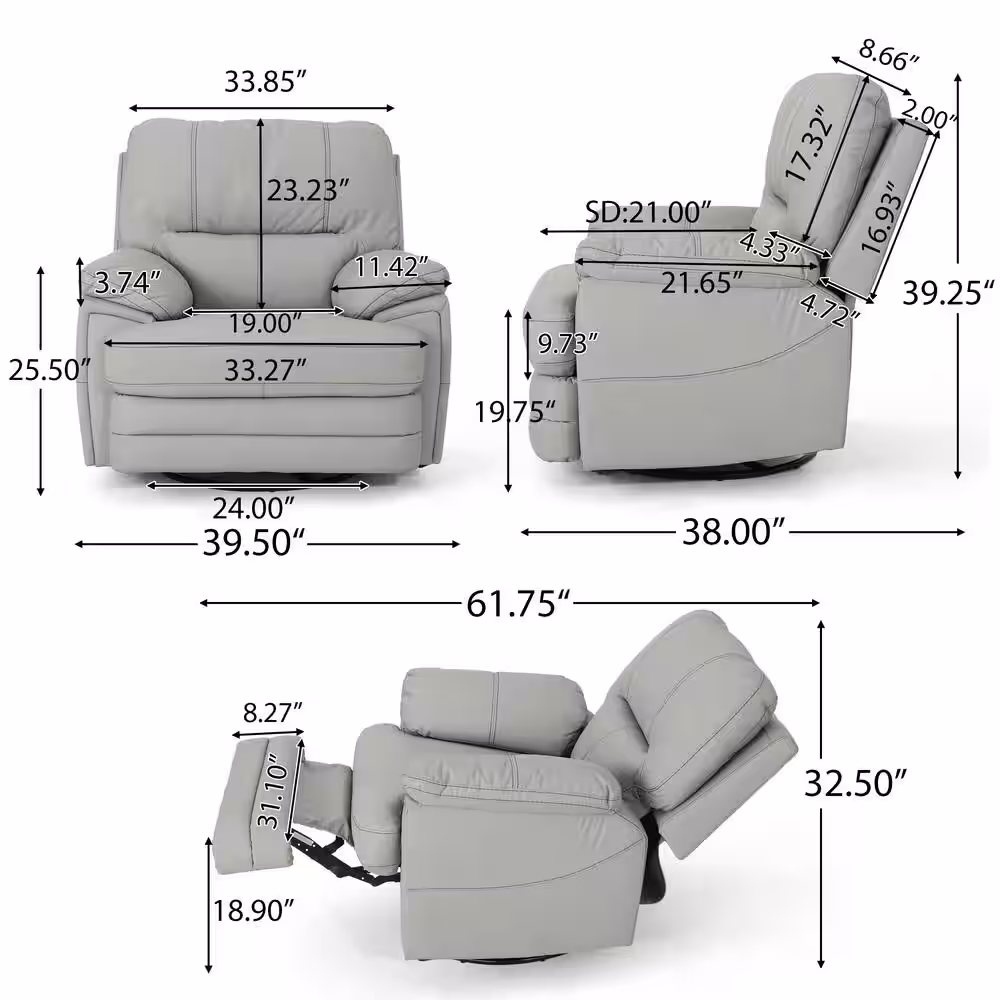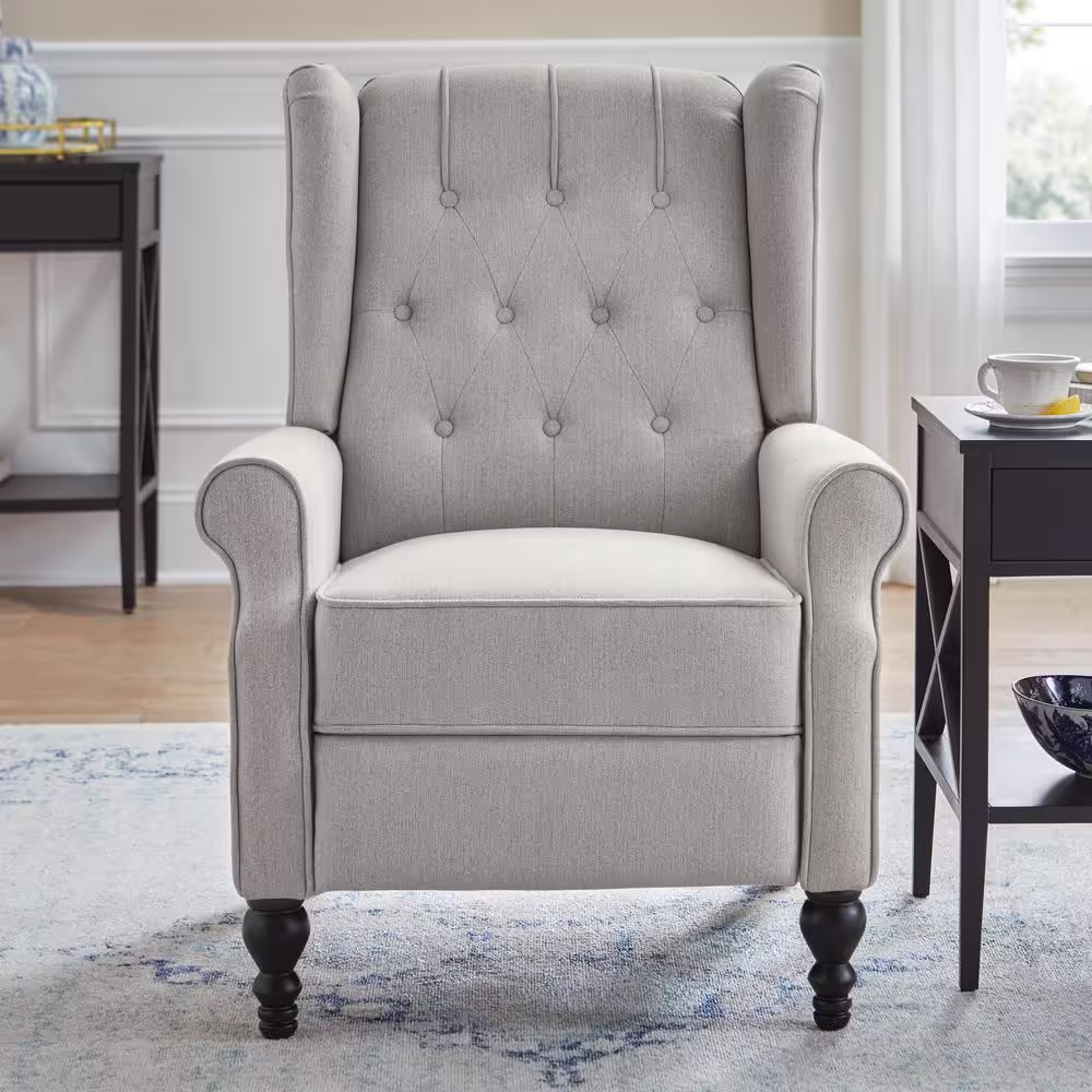 StyleWell Waybrook Stone Gray Upholstered Tufted Wingback Pushback Recliner