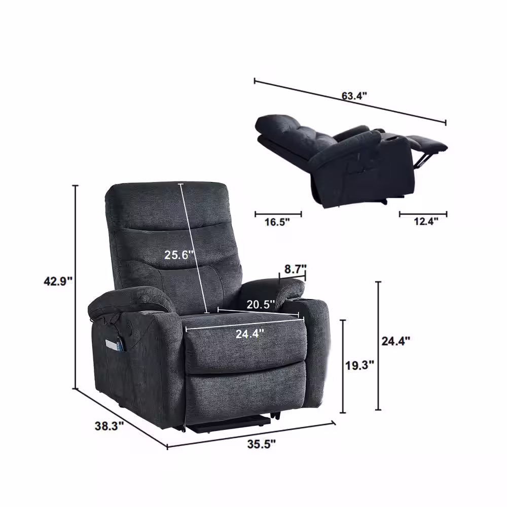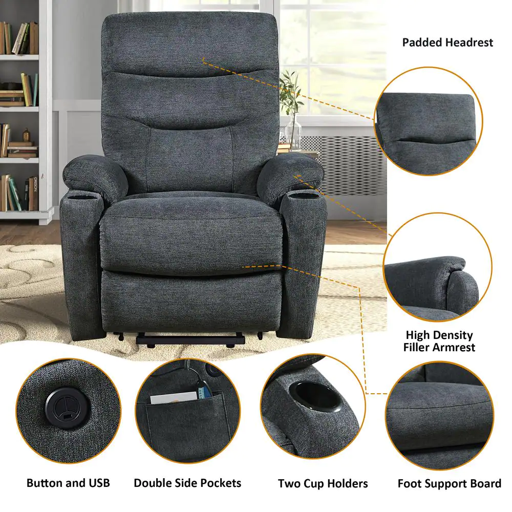 Seafuloy Dark Gray Massage and Heat Electric Power Lift Recliner Chair with Cup Holders and USB Charge Ports