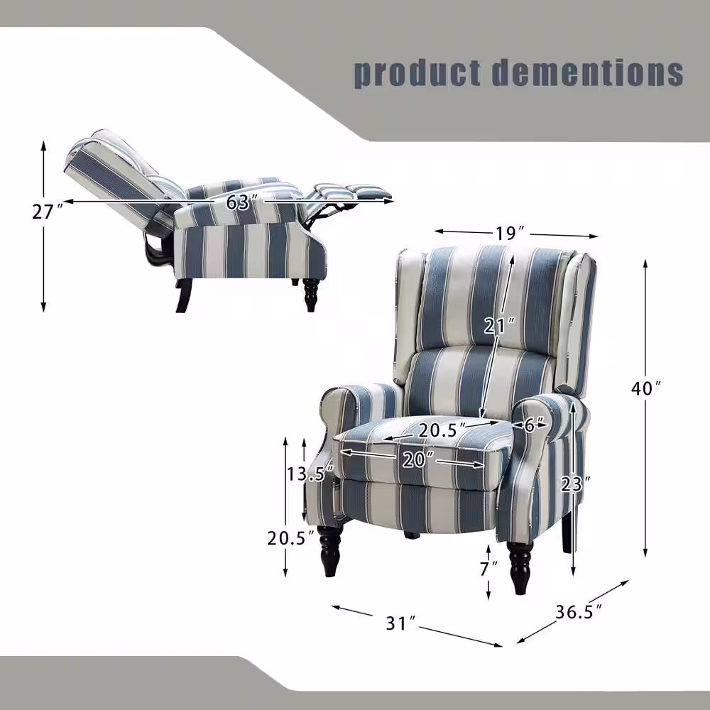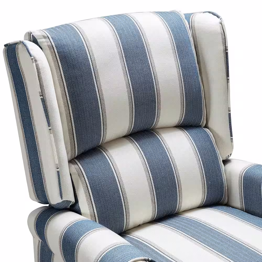 JAYDEN CREATION Bogazk Modern Stripe Navy Polyester Pattern Manual Recliner with Wingback and Rubber Wood Legs