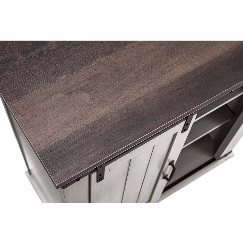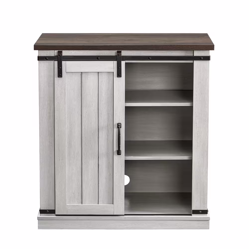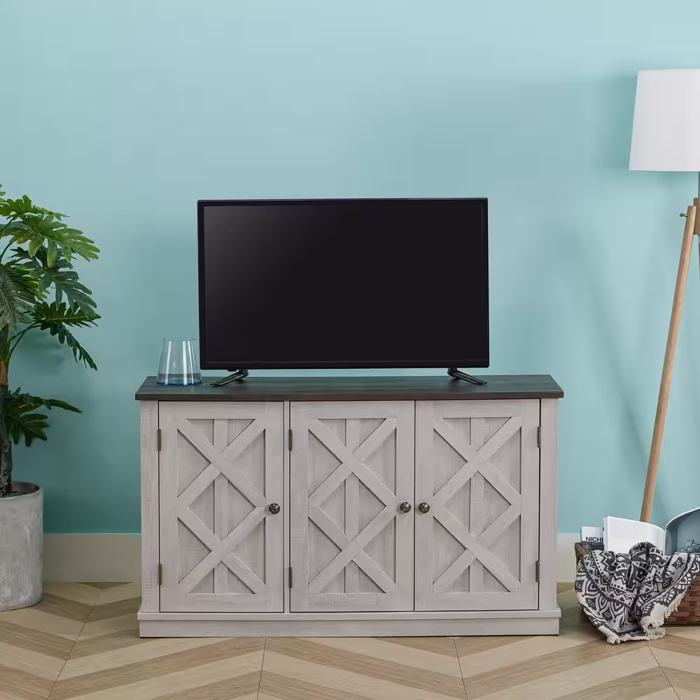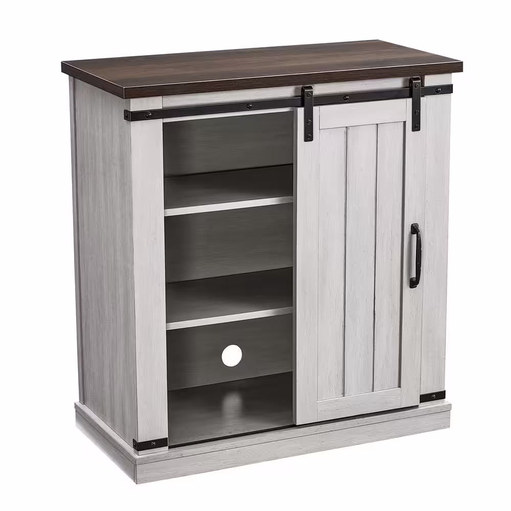 FESTIVO 31.5 in. Saw Cut-Off White with Dark Walnut Desktop TV Stand (Fits TVs Up To 40 in.)