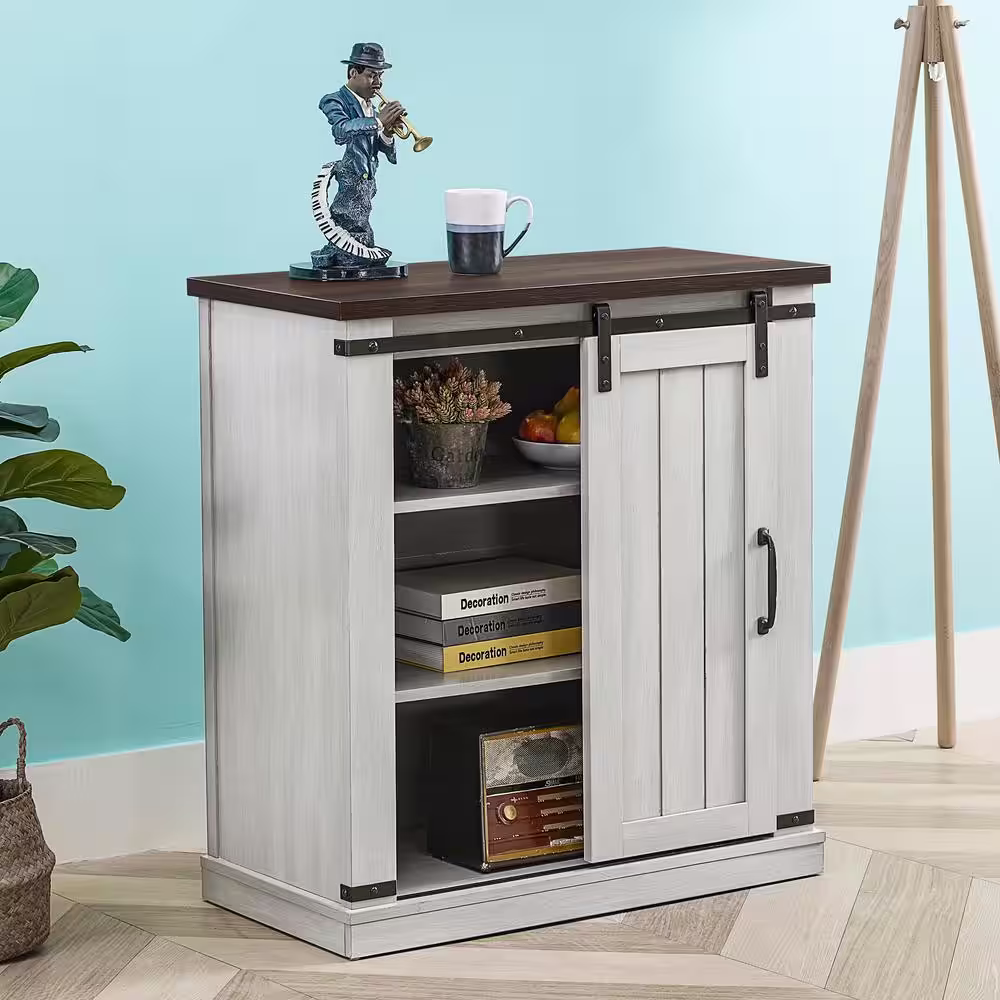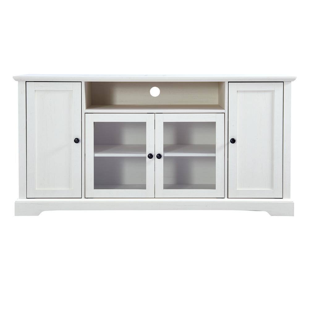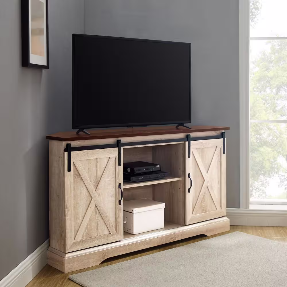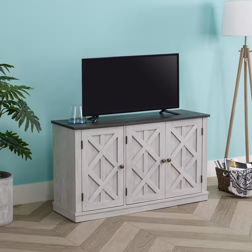 FESTIVO 31.5 in. Saw Cut-Off White with Dark Walnut Desktop TV Stand (Fits TVs Up To 40 in.)