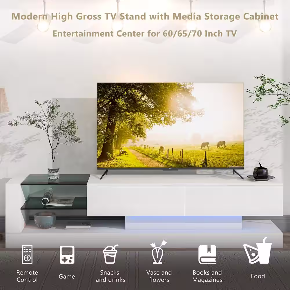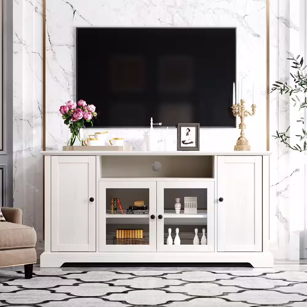 JASIWAY 78.7 in. Beige TV Stand with 4 Drawers Fits TV's Up to 80 in. with Cable Management