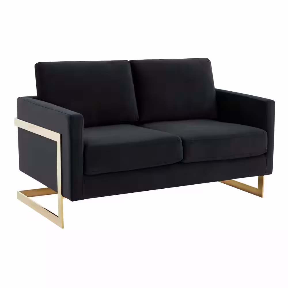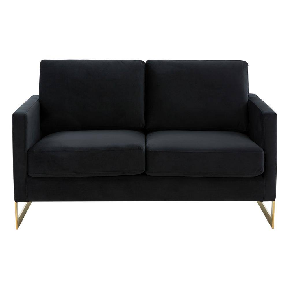 Leisuremod Lincoln Modern 55" Mid-Century Modern Upholstered Velvet Loveseat with Gold Frame in Midnight Black