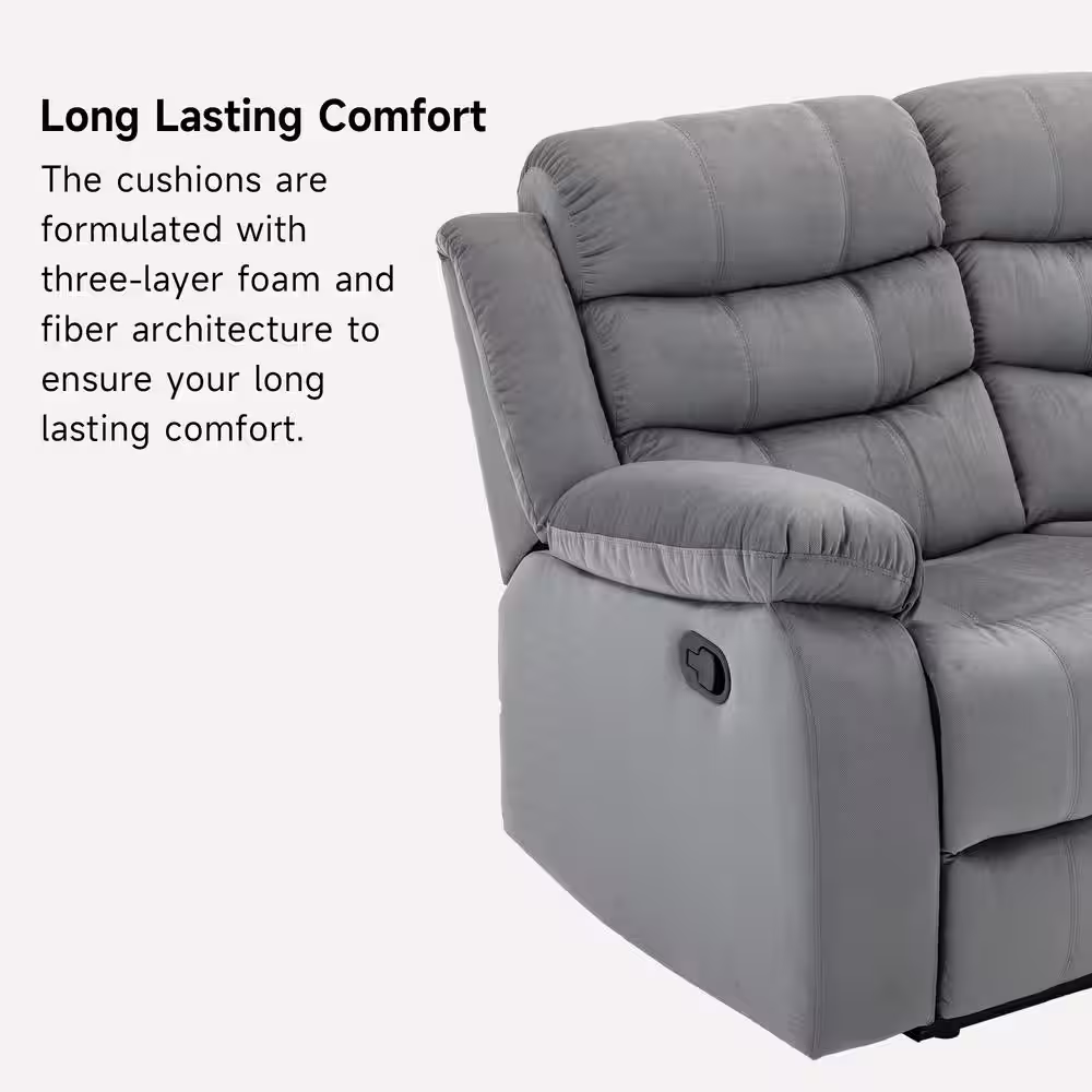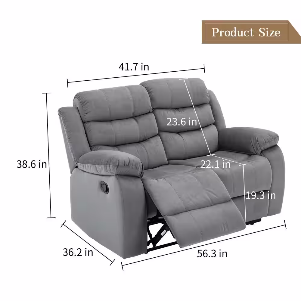 Pinksvdas Sofas 56.3 in. Grey Striped Microfiber Slope Arm 2-Seats Comfortable Couches with Wall Hugger Recliner