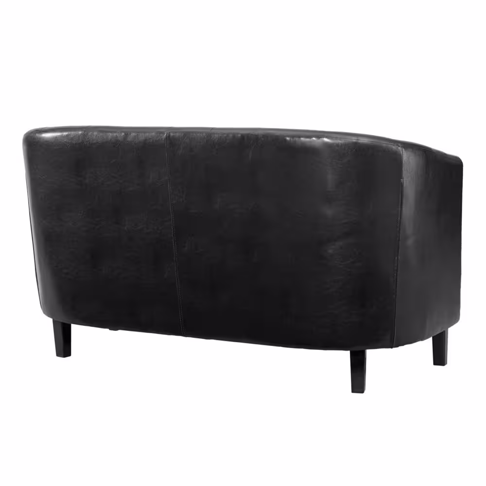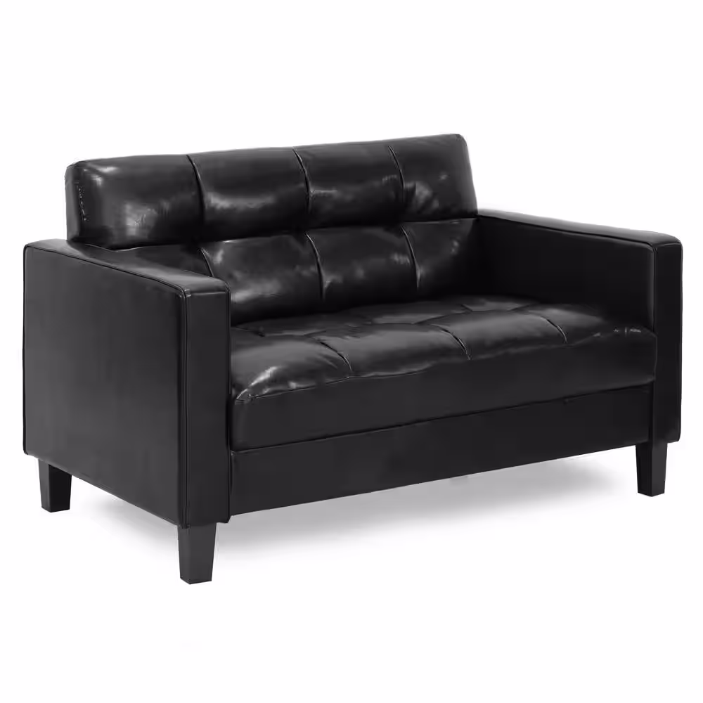 Furinno Brive 54.1 in. Black Tufted Faux Leather 2-Seater Loveseat with Square Arms