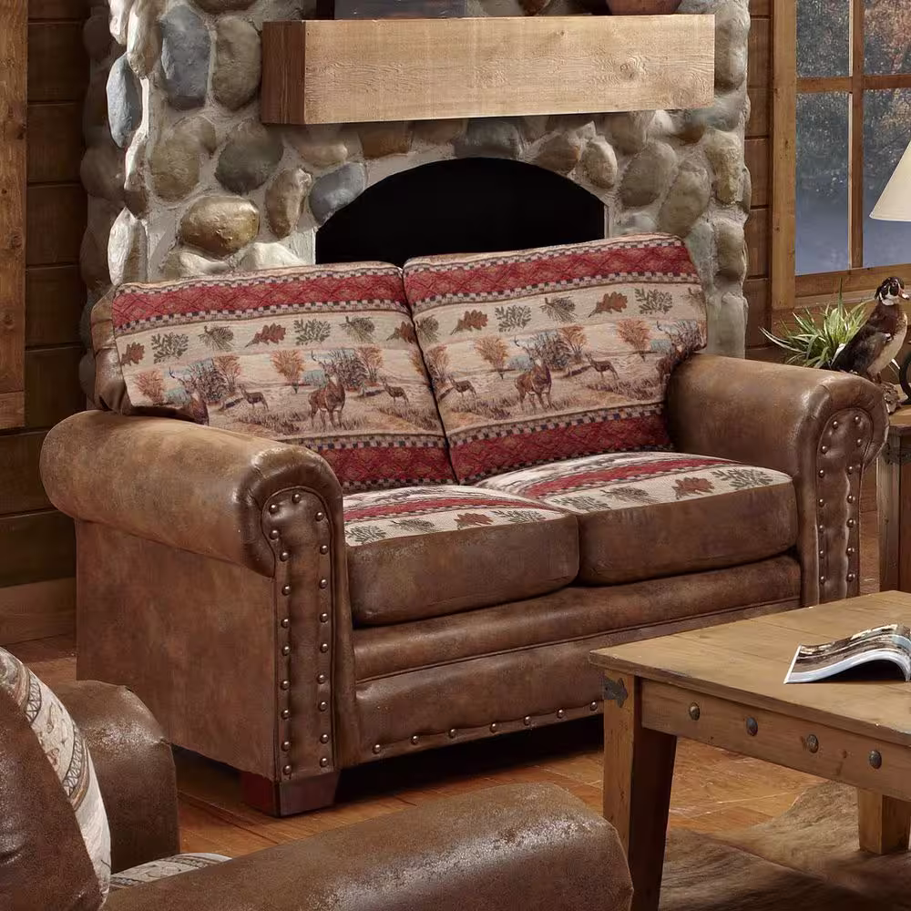Noble House Silverdale 61.75 in. Cognac Brown Solid Faux Leather 2-Seat Loveseats with Nailhead