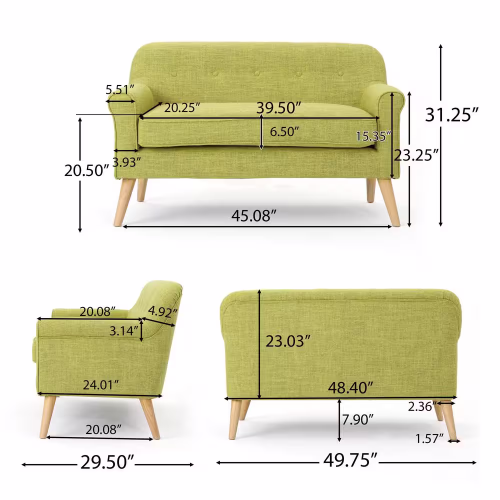 None Mariah Muted Green Polyester 2-Seater Loveseat with Tapered Wood Legs