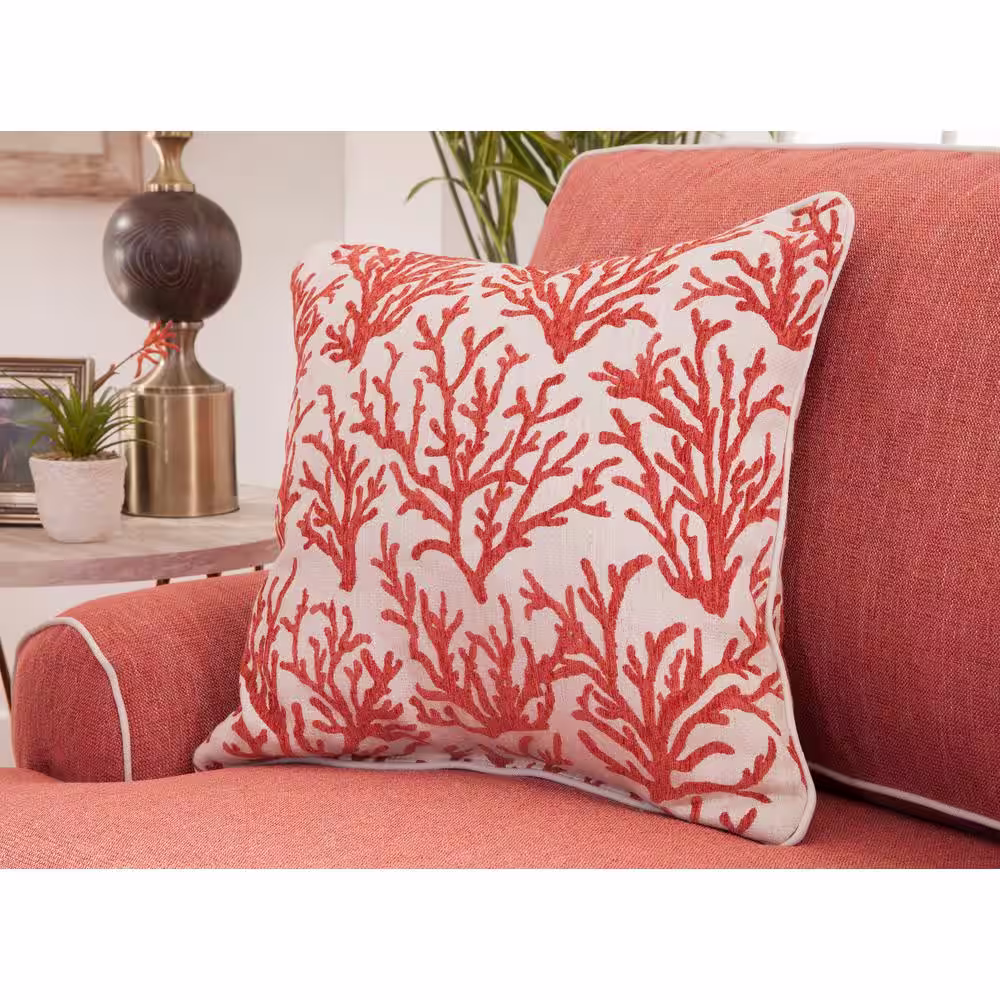 American Furniture Classics Coral Springs 69 in. W Coral Fabric 2-Seater Loveseat with 2-Accent Pillows