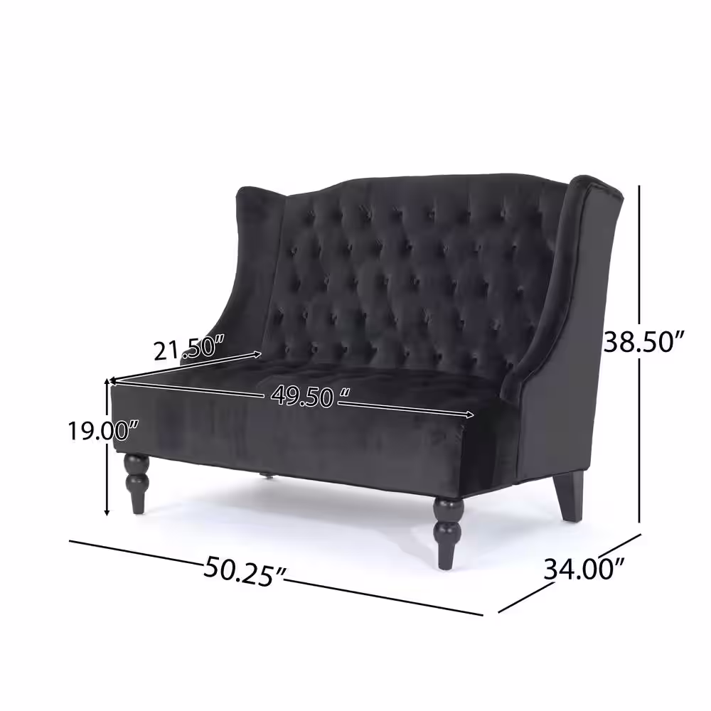 Lifestyle Solutions Harvard 31.5 in. Black Microfiber 2-Seater Loveseat with Flared Arms