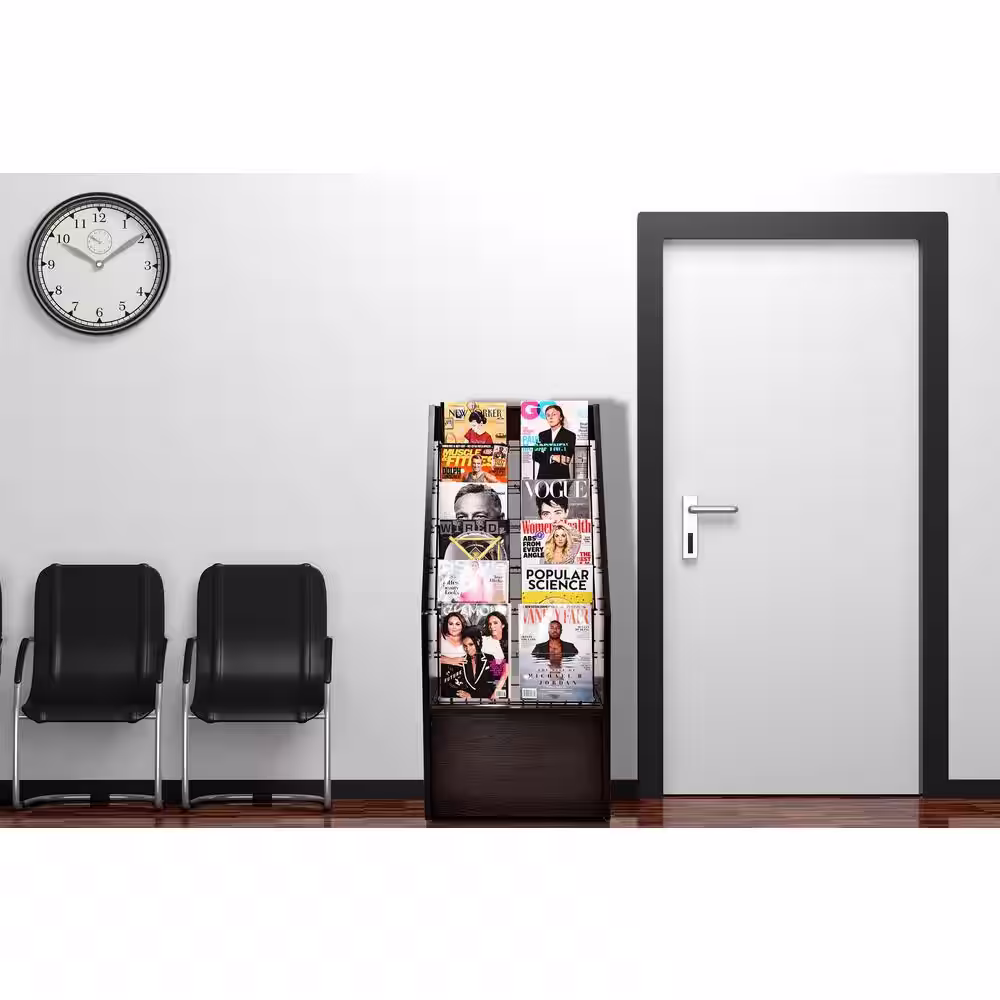 AdirOffice Wooden Free Standing 6-Tier Display Literature Brochure Magazine Rack in Black (2-Pack)