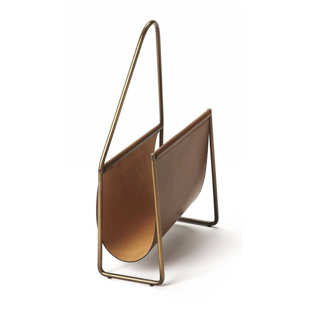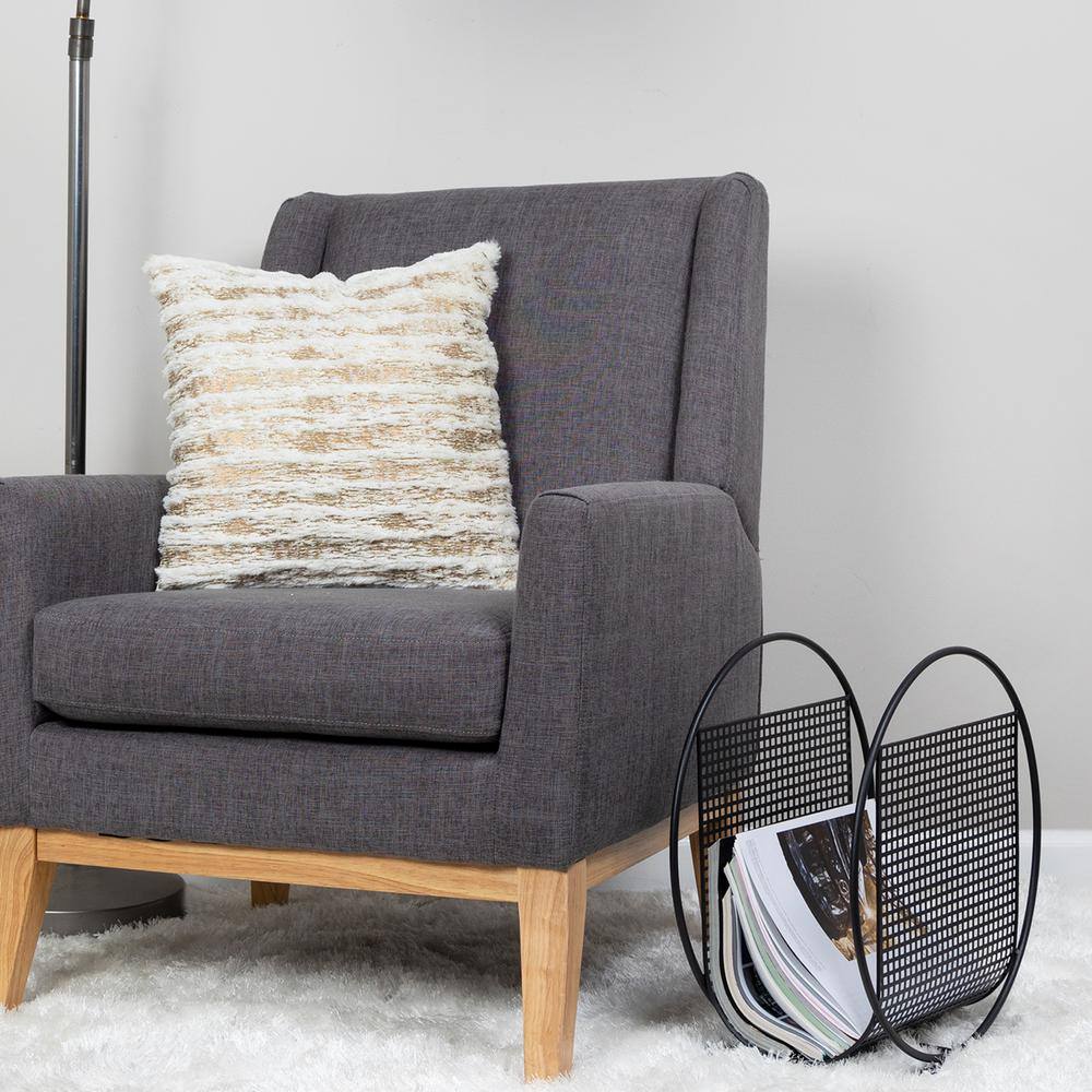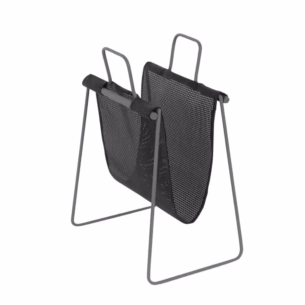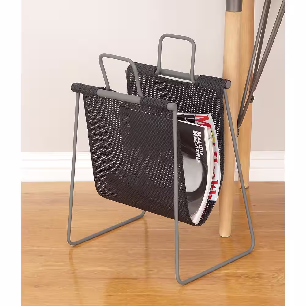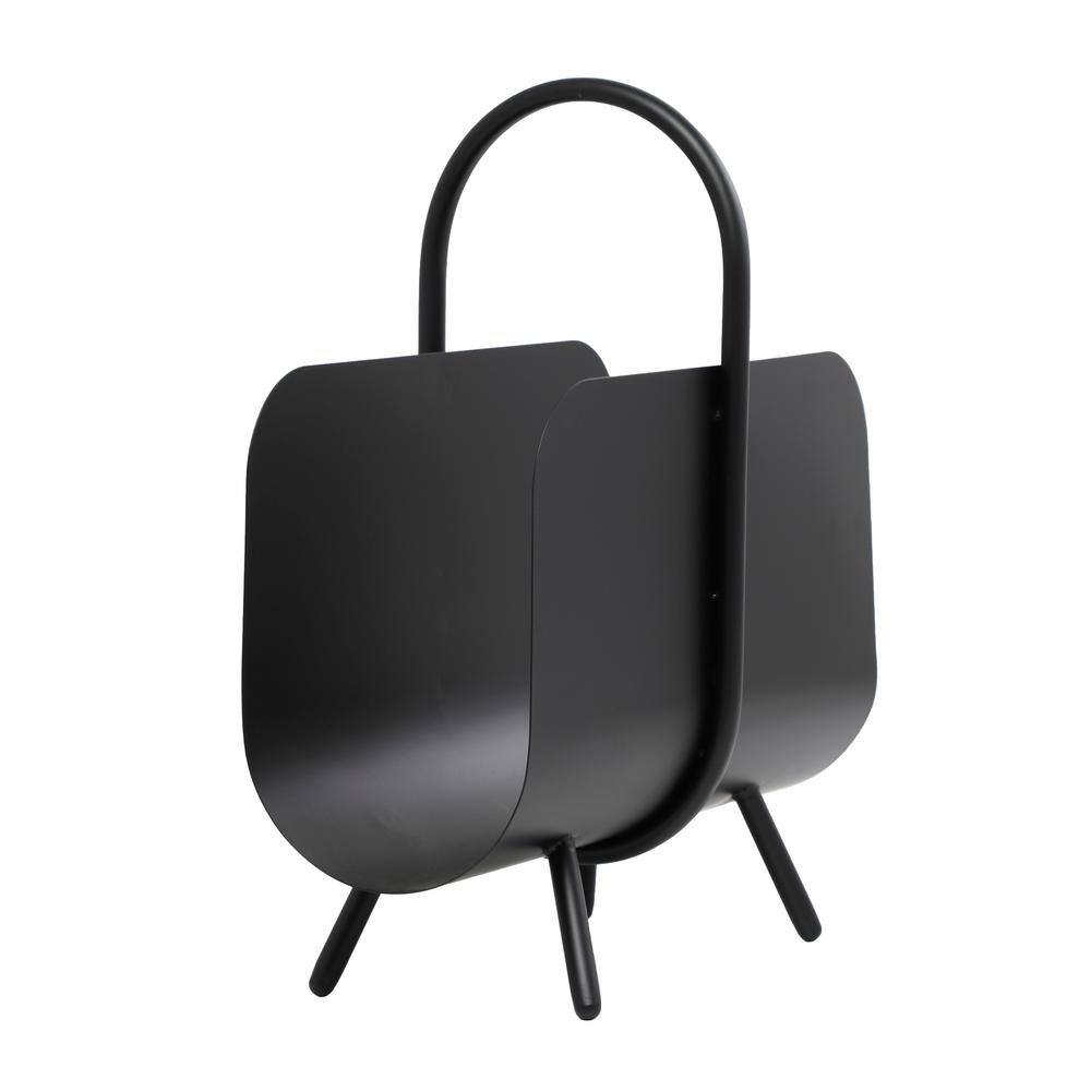 Novogratz Black Curved Standing Magazine Holder with Arched Handle and Flared Legs