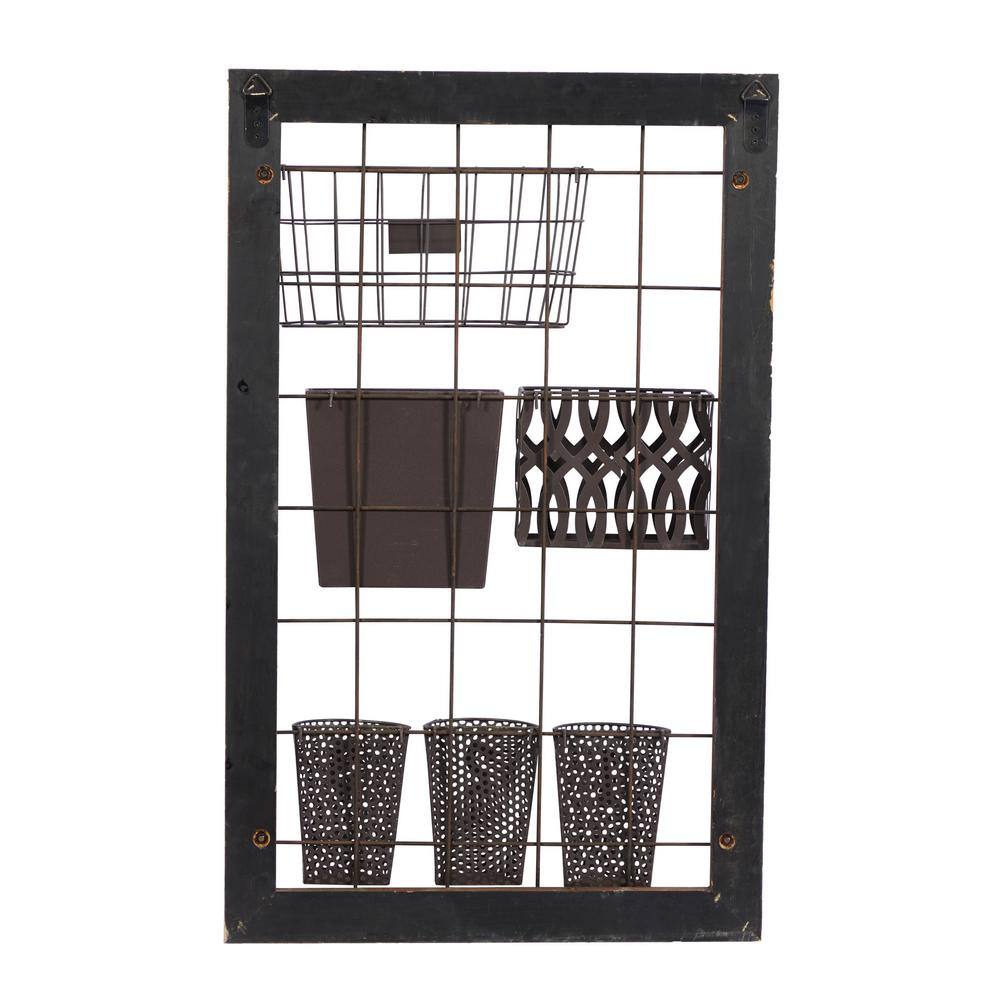 Litton Lane Brown Wall Mounted Magazine Rack Holder with Suspended Baskets and Label Slot