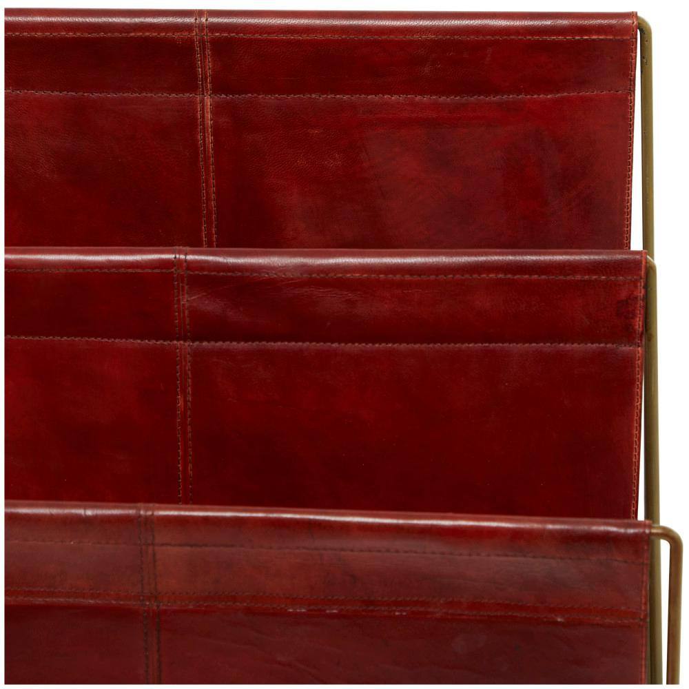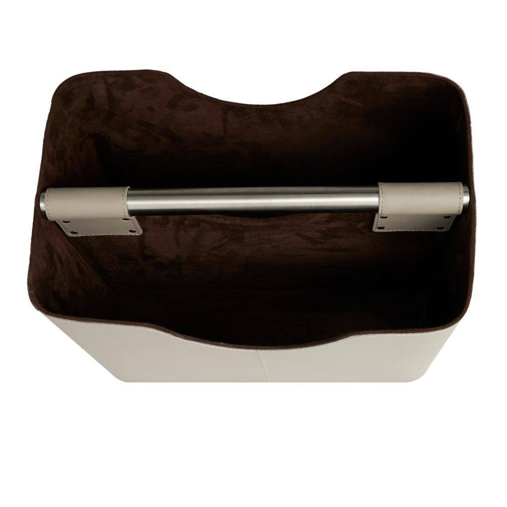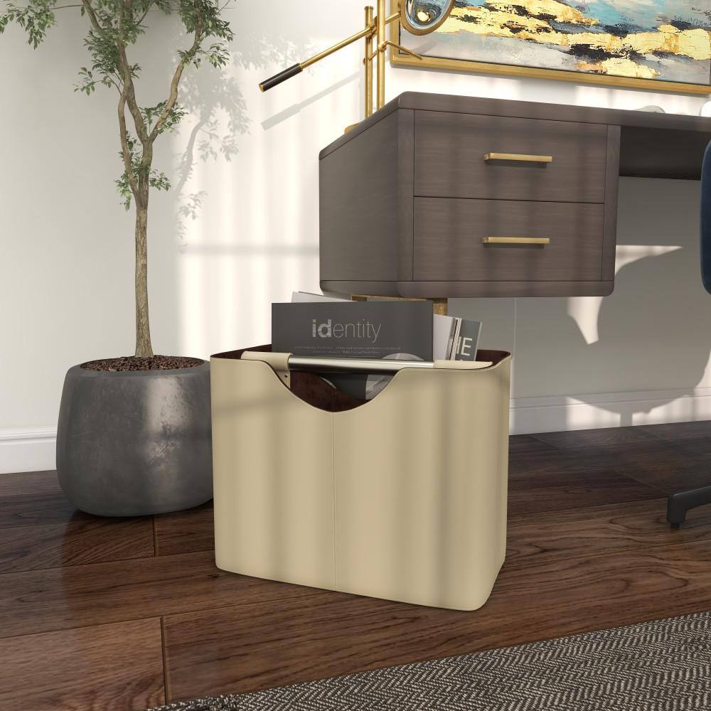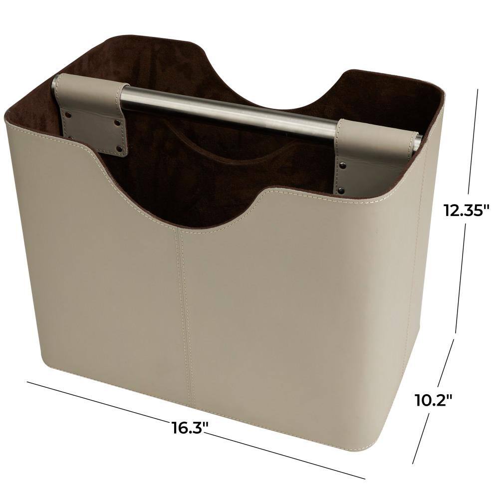 Litton Lane Brown Handmade Box Style Standing Magazine Holder with Detail Stitching and Curved Handles