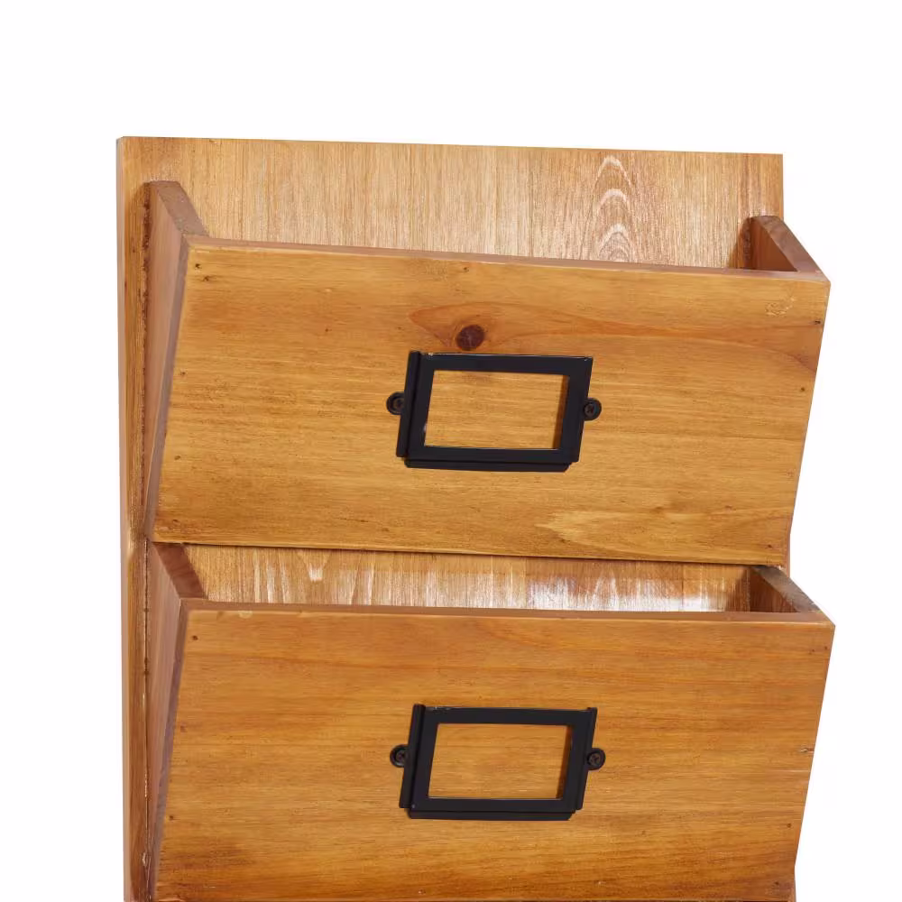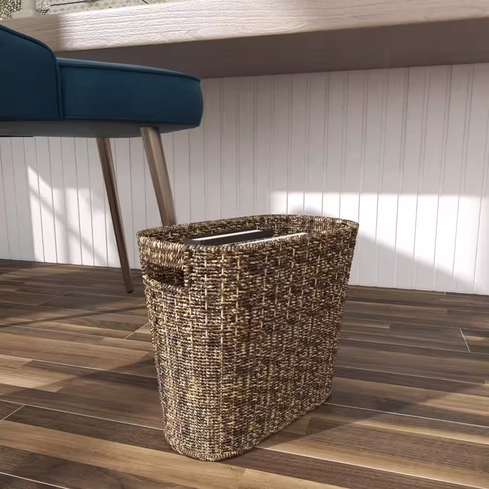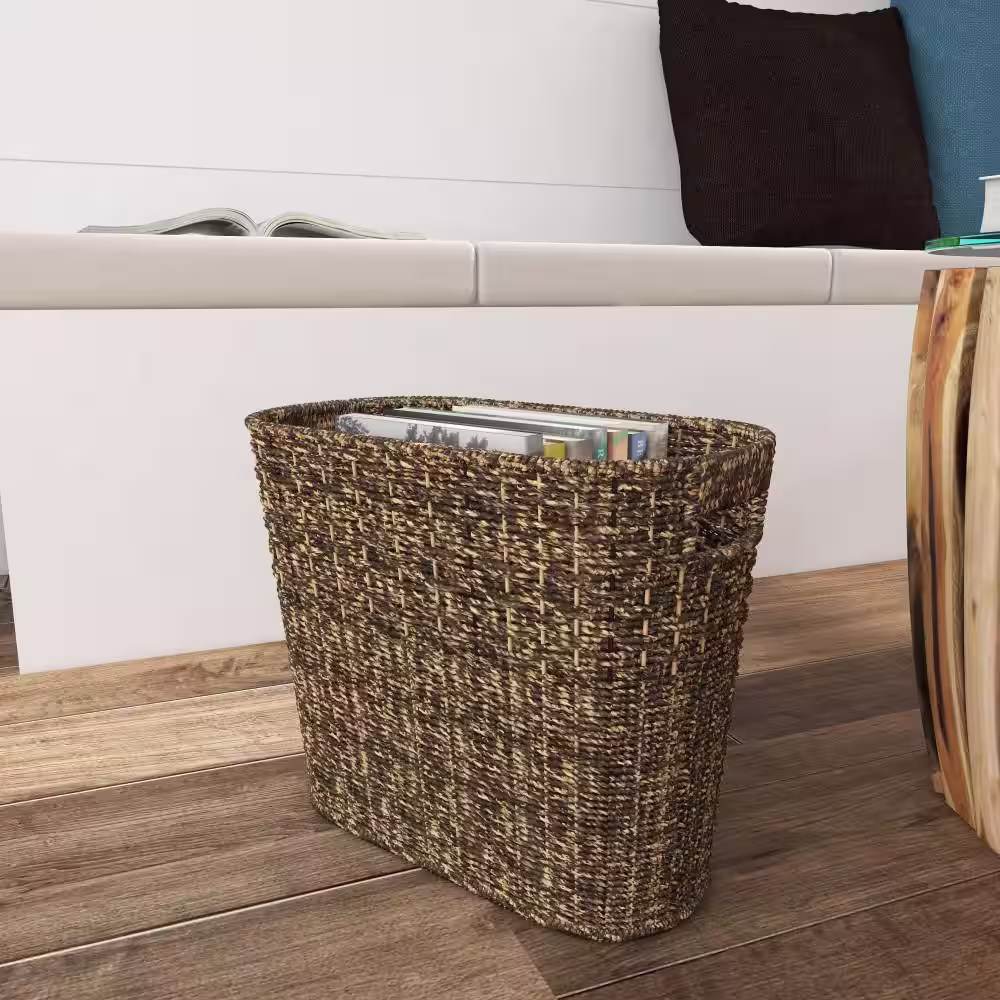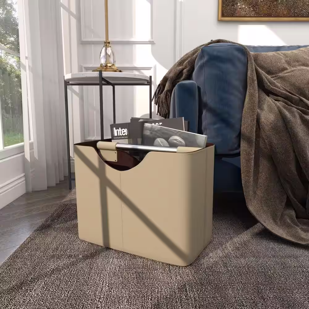 Litton Lane Brown Handmade Box Style Standing Magazine Holder with Detail Stitching and Curved Handles