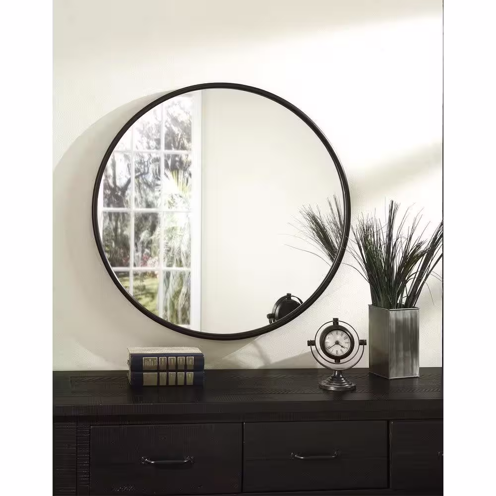 FirsTime & Co. Medium Round Satin Black Modern Mirror (36 in. H x 1 in. W)