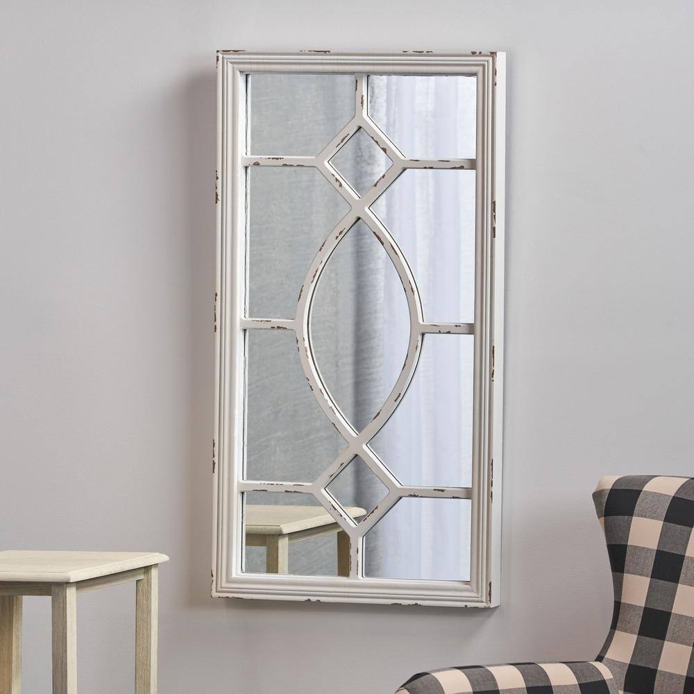 Noble House Emmons 44 in. x 22.5 in. Farmhouse Rectangle Framed White Accent Mirror