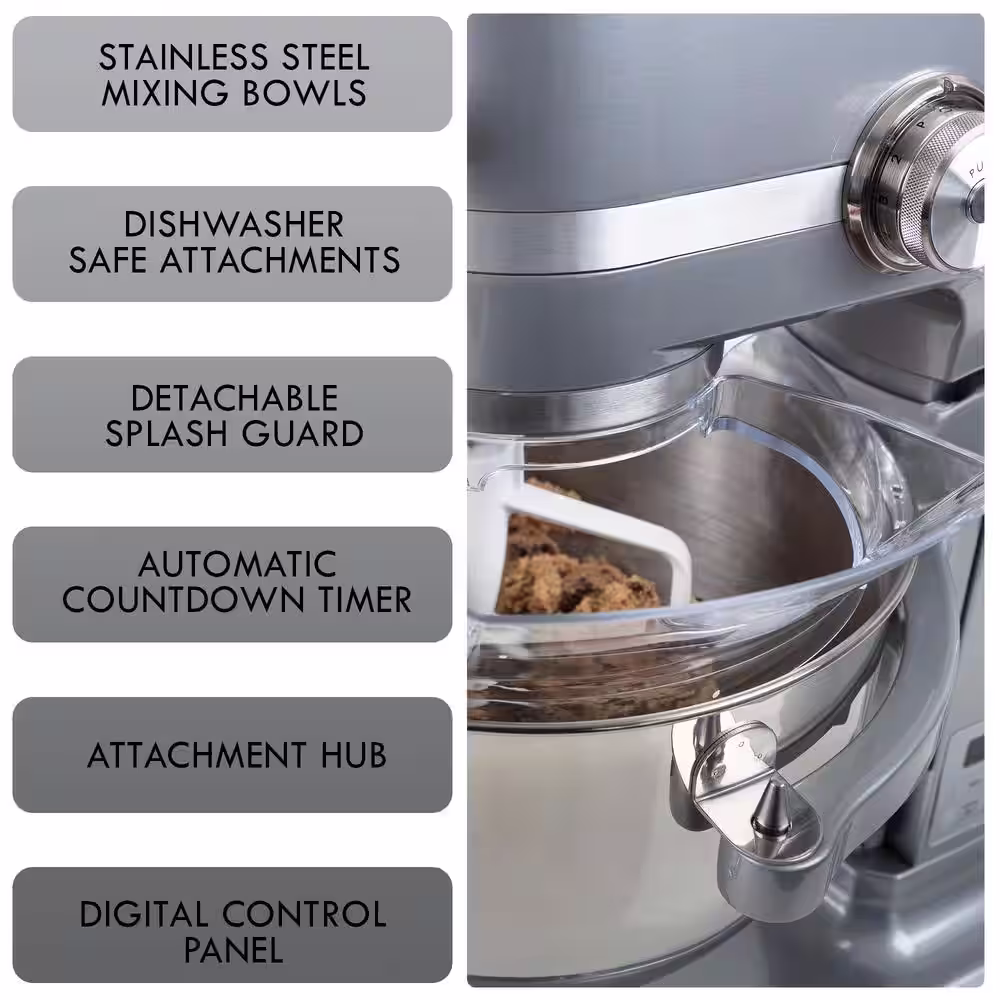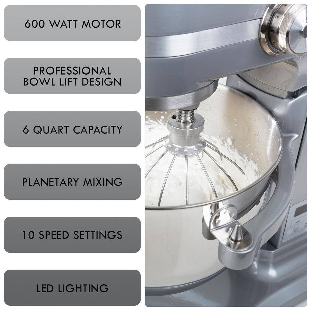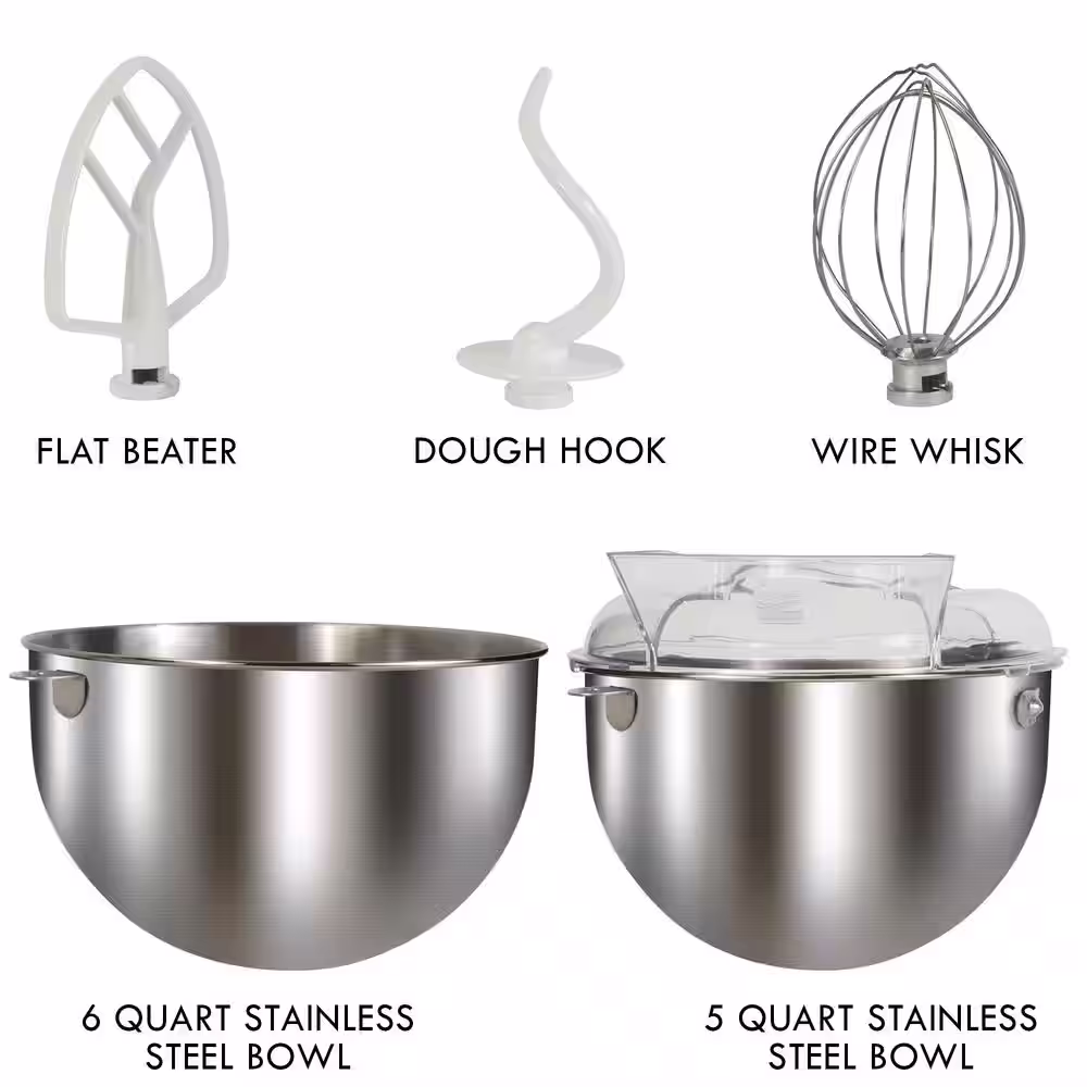 KENMORE Kenmore Elite Heavy-Duty 6 Qt Bowl-Lift Stand Mixer 600W, with Beater, Whisk, Dough Hook, Grey