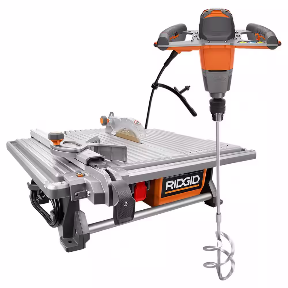 RIDGID 6.5 Amp Corded 7 in. Table Top Wet Tile Saw with Single-Paddle Mixer