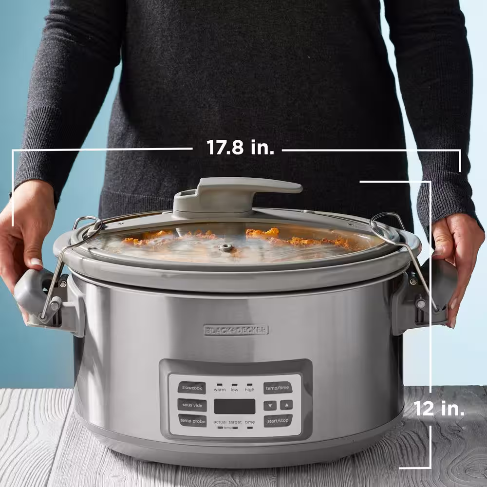 BLACK+DECKER 7 Qt. Stainless Steel Electric Slow Cooker with Temperature Probe and Precision Sous-Vide