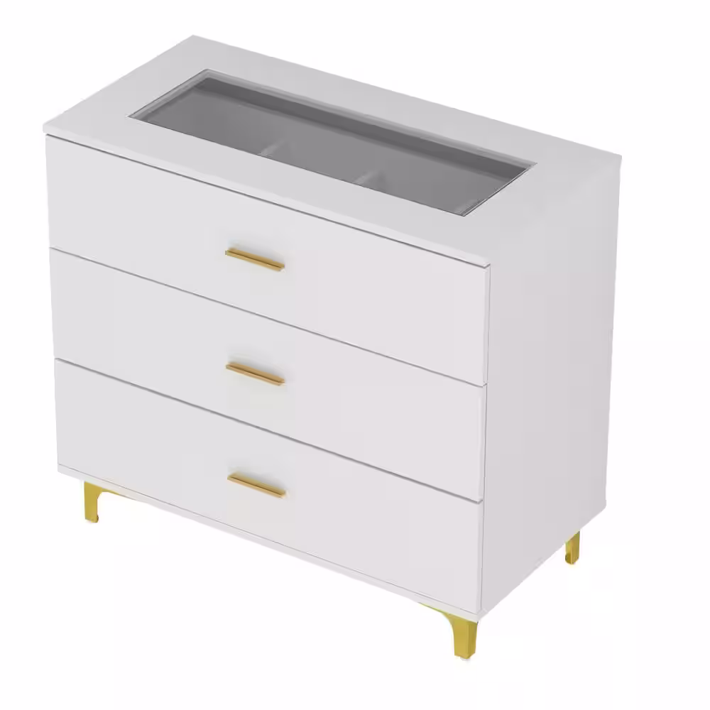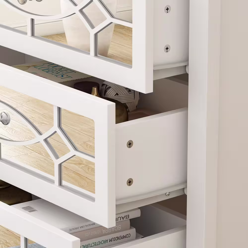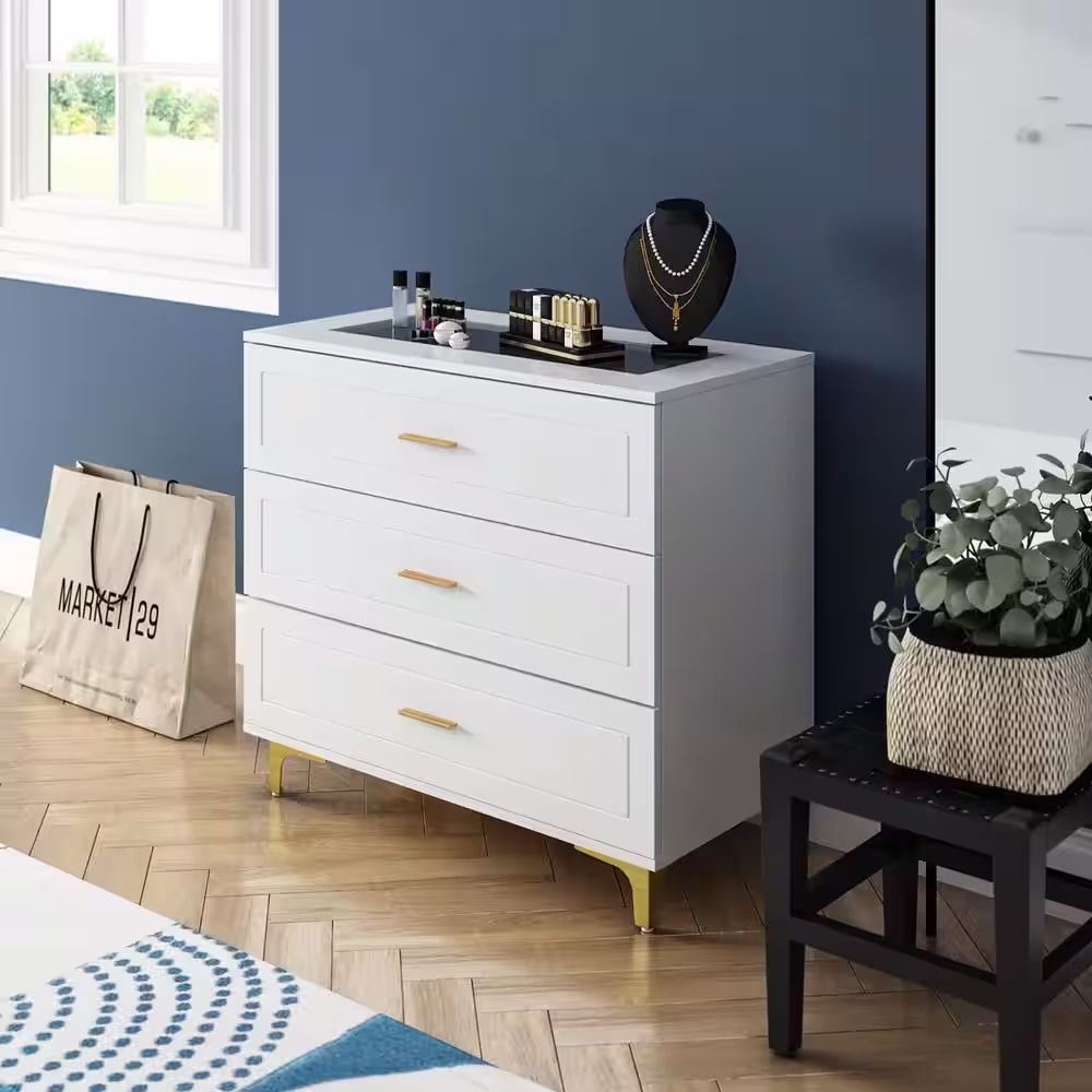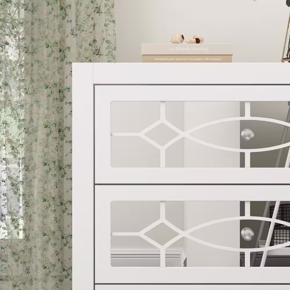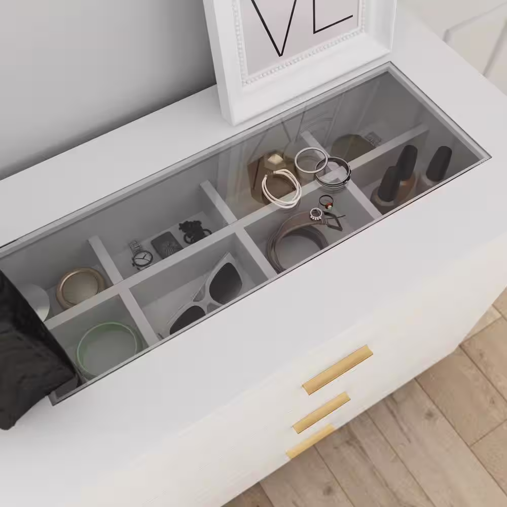 None 3-Mirrored Drawers White Wood Nightstands Bedside Table With Mirror Finish 11.8 in. D x 26 in. W x 28 in. H