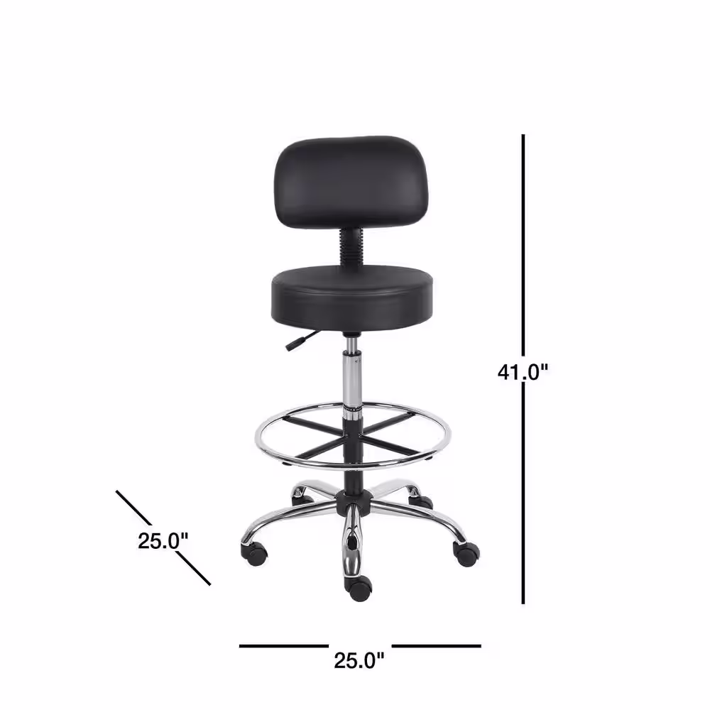 BOSS Office Products WorkPro Black/Chrome Antimicrobial Vinyl Medical Stool