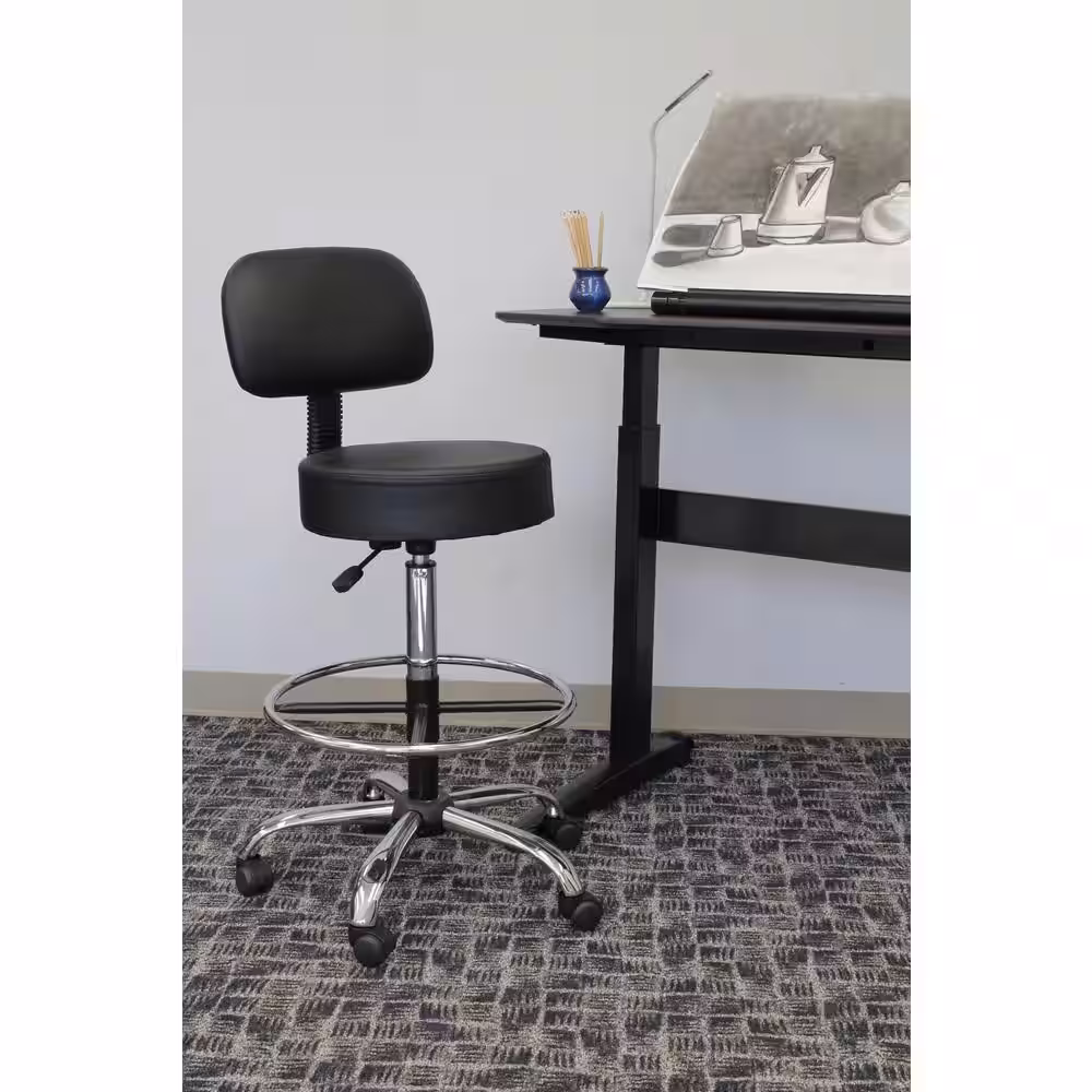 BOSS Office Products Black Vinyl Task Counter Stool with Back Rest and Seat Height Adjustment