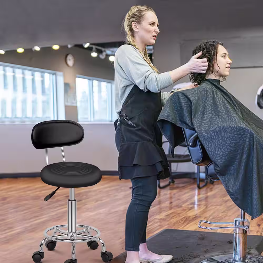 None 34 in. Height Black PU Leather Seat Adjustable Salon Stool with Back Office Rolling Chair