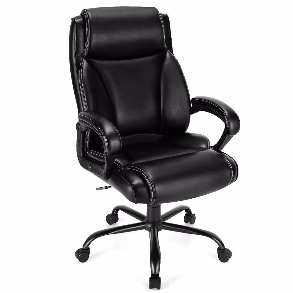 Costway Black 400 lbs. Big and Tall Leather Office Chair Adjustable High Back Task Chair