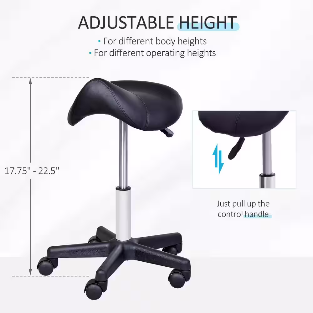 None Black PU Leather Seat Swivel Saddle Stool Adjustable Salon Chair with Backrest