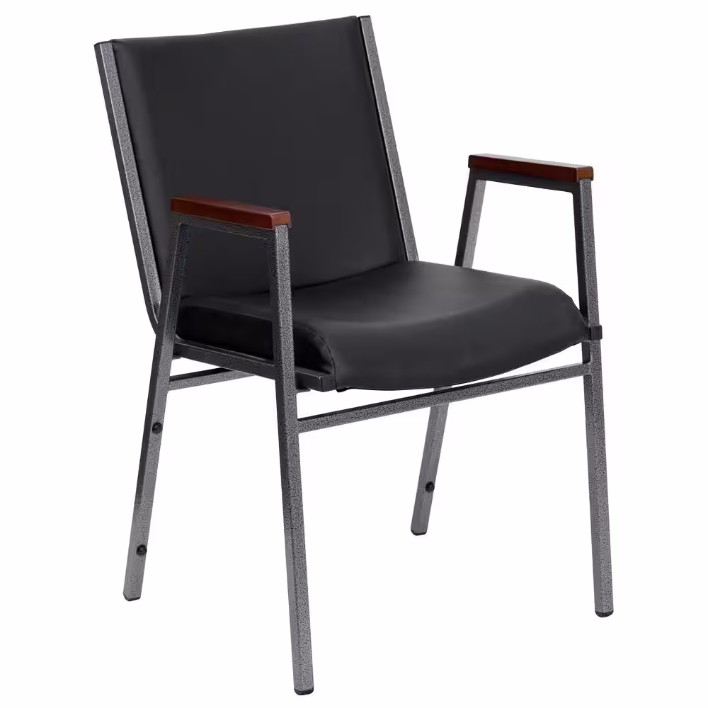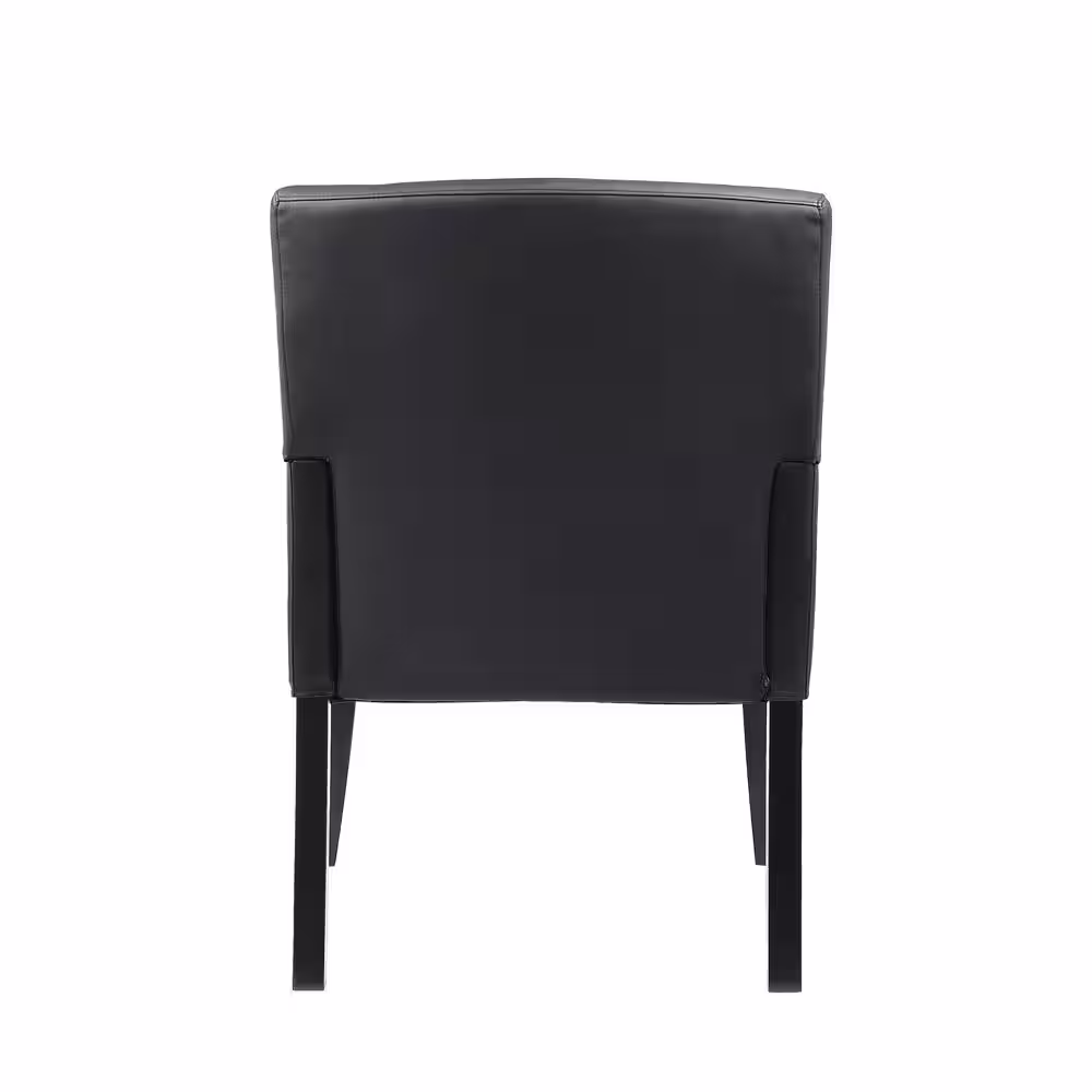 BOSS Office Products Black Leather Guest Chair with Arms, Black Steel Frame