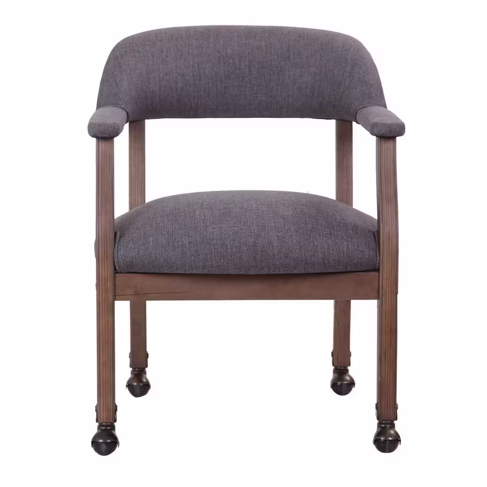 BOSS Office Products Gray Fabric Traditional Rolling Captains Chair with Driftwood Finish, Brass Hooded Casters