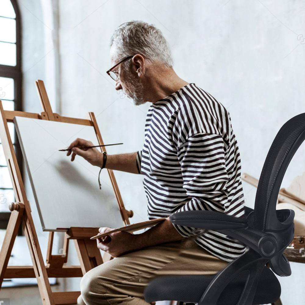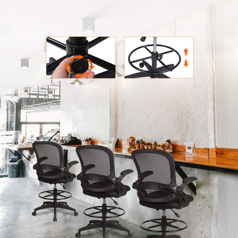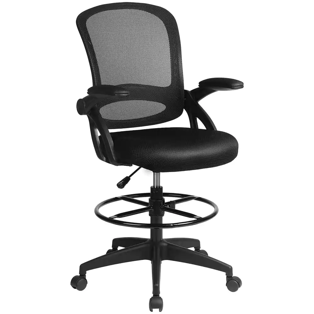 Lucklife Black Mesh Drafting Chair Tall Office Chair with Flip-up Armrests