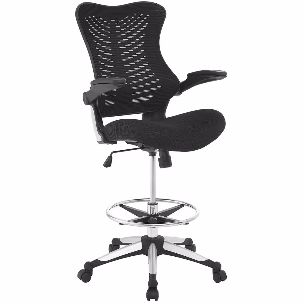 MODWAY Charge 27.5 in. Width Big and Tall Black Mesh Drafting Chair with Swivel Seat