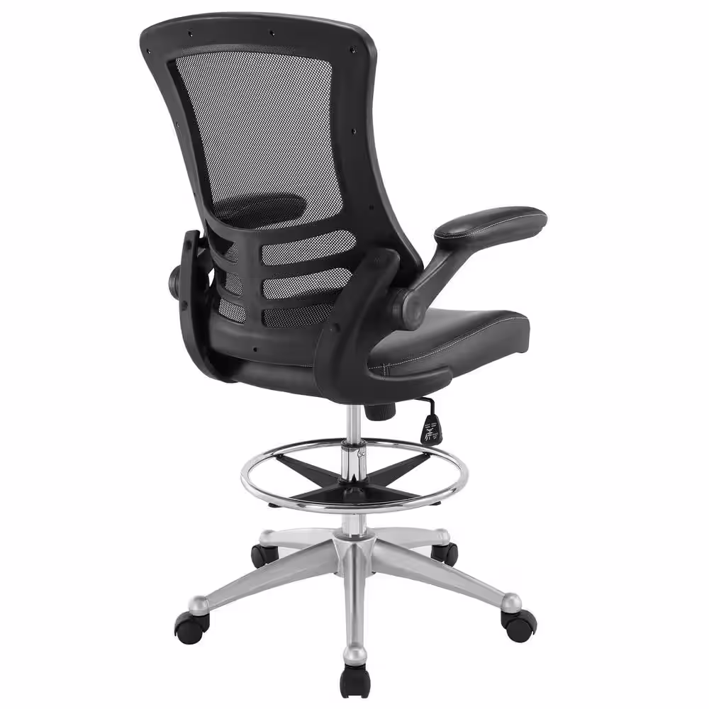 MODWAY Attainment 26.5 in. Width Big and Tall Black Vinyl Drafting Chair with Swivel Seat