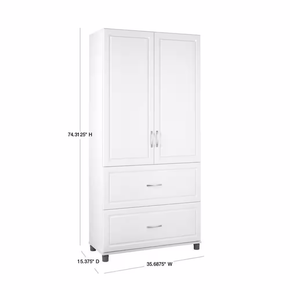 Ameriwood Home 74 in. H x 36 in. W x 15 in. D Trailwinds White 2-Door/2-Drawer Freestanding Storage Cabinet