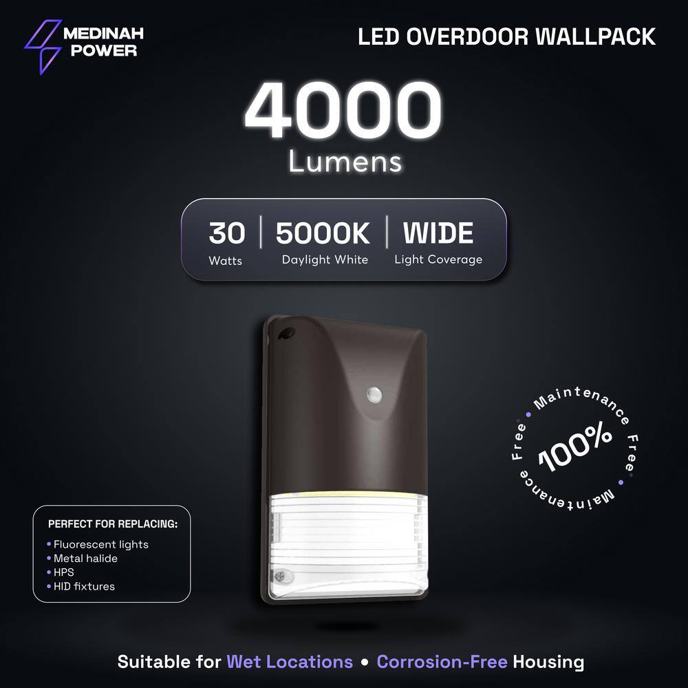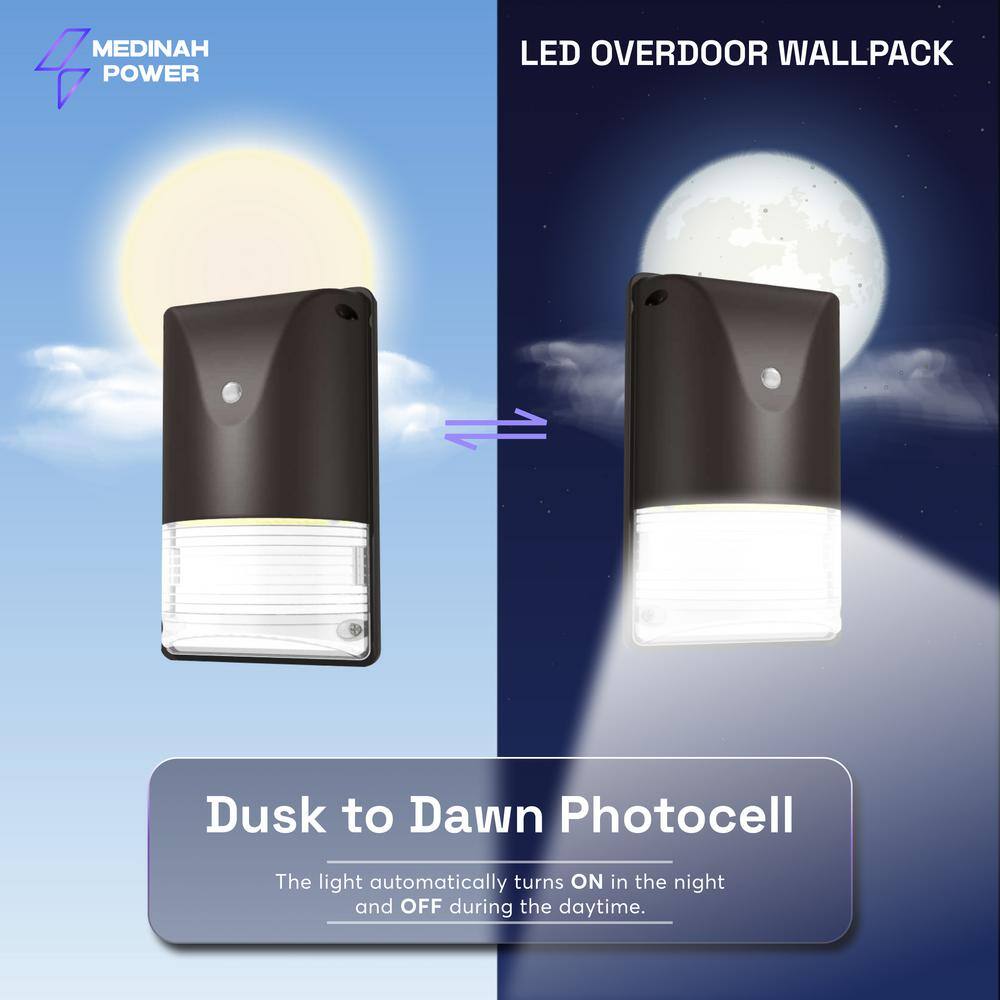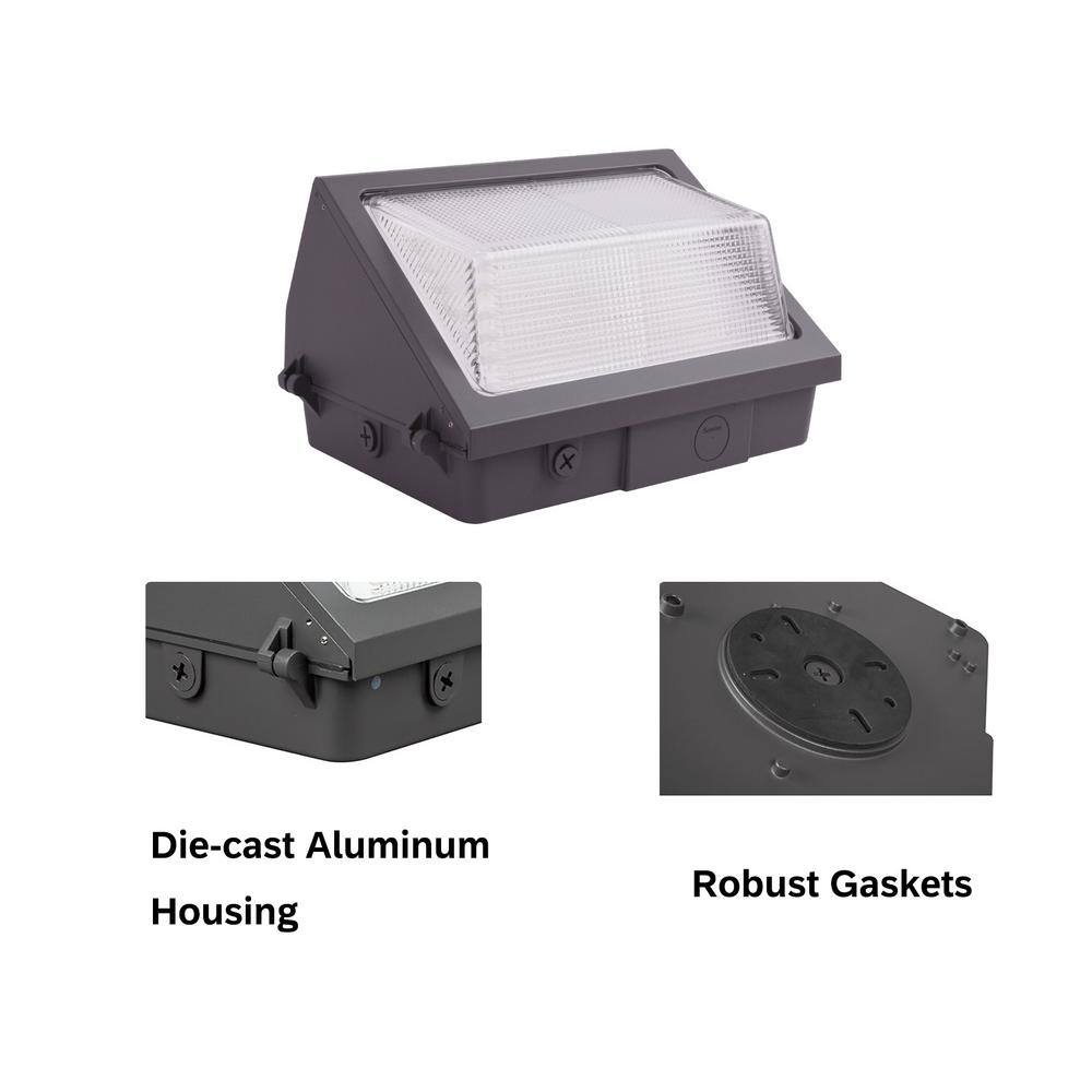 LUXRITE 800- Watt Equivalent Integrated LED Brown Dusk to Dawn Wall Pack Light with Photocell Sensor 3 Color Selectable