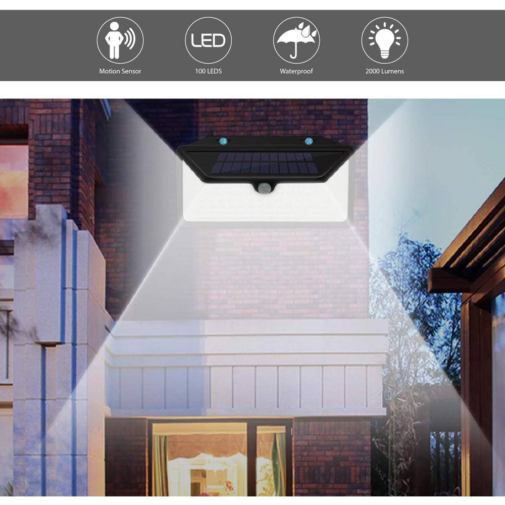 WBM SMART 100 LED Outdoor Lights, 11.8 in. Upgraded Solar Panel Wall Lamp-Black (2-Pack)