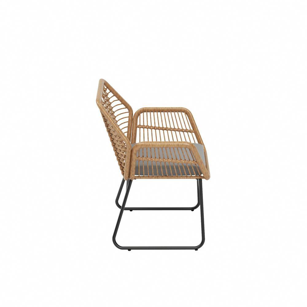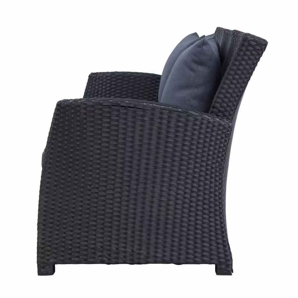 None Black 4-Piece Wicker Patio Conversation Set with Dark Gray Cushions and 2 Arm Chairs