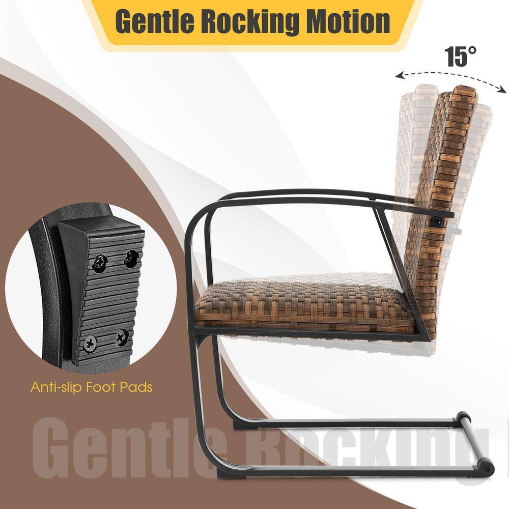 Costway 3-Piece Wicker Patio Conversation Set Outdoor Bistro Set C-Spring Chair Padded Seat and Back Pillow